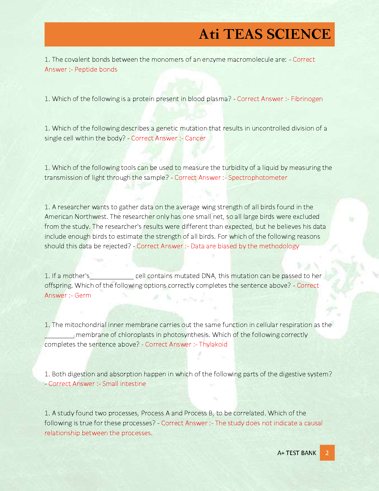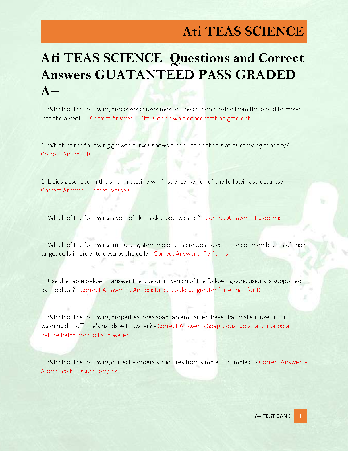ATI TEAS 7 Science Test Bank | Comprehensive Questions & Verified Answers for A+ Grade | Assessment Technologies Institute (ATI)