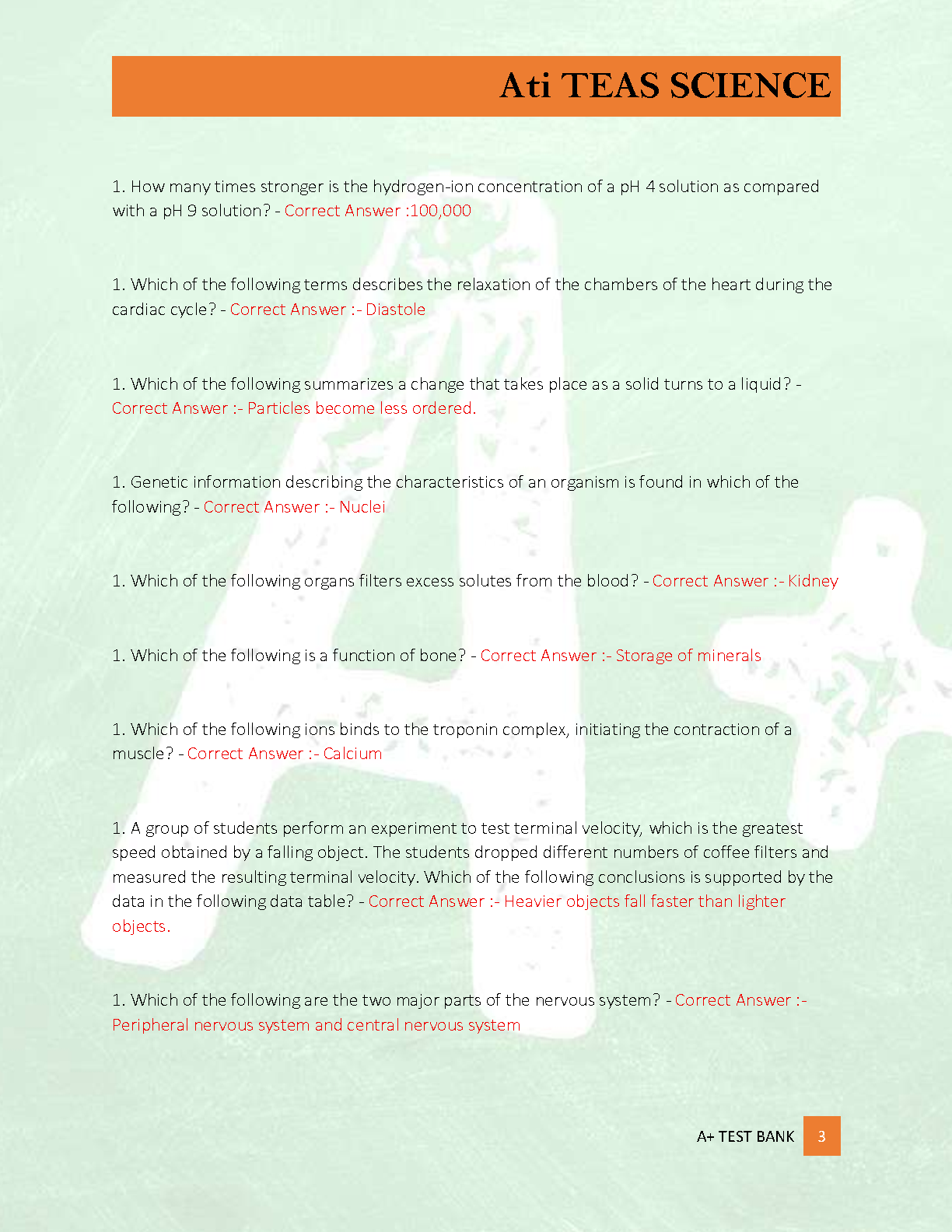 Master the Science section of the ATI TEAS 7 exam with our comprehensive test bank. This A+ graded resource is packed with a wide range of practice questions and 100% correct, verified answers. Designed to mirror the actual exam format, this study guide covers all essential topics in human anatomy and physiology, life and physical sciences, and scientific reasoning. Ace your TEAS Science test on the first try and secure your spot in nursing school with this essential preparation tool.