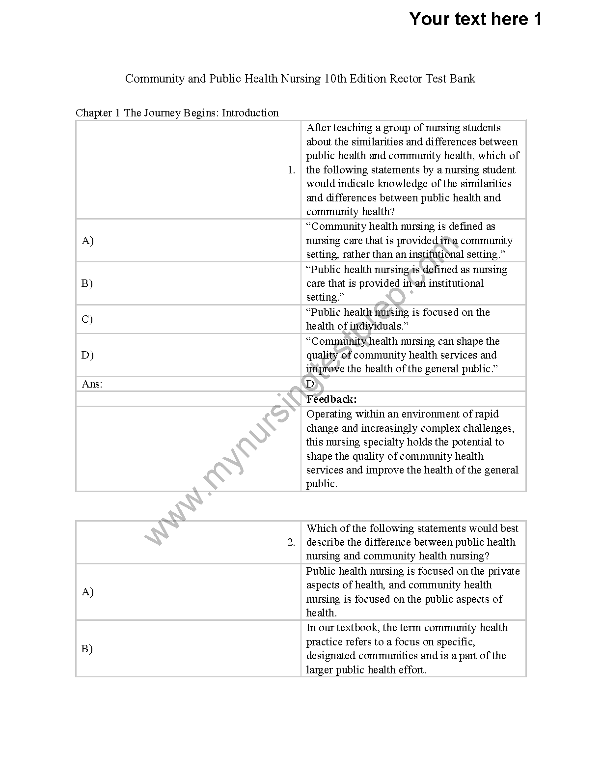 Test Bank for Community and Public Health Nursing, 10th Edition by Cherie Rector