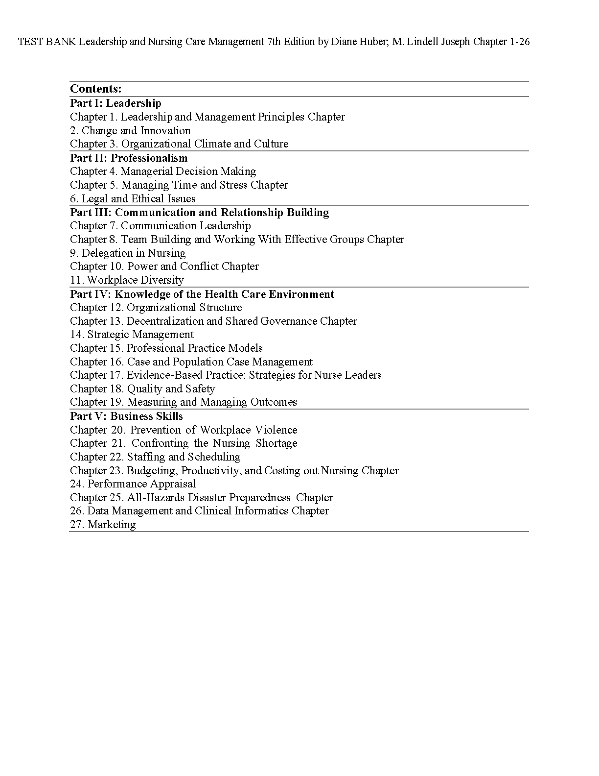 Test Bank for Leadership and Nursing Care Management, 7th Edition by Diane L. Huber & M. Lindell Joseph