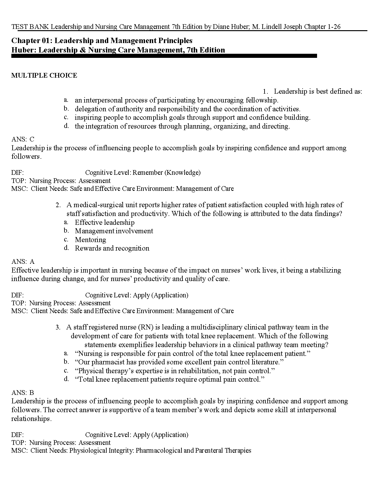 Unlock your full potential with the official Test Bank for 'Leadership and Nursing Care Management, 7th Edition' by Diane L. Huber and M. Lindell Joseph. This comprehensive resource covers all 26 chapters, providing an extensive collection of exam-style questions, answers, and detailed rationales. It's the perfect tool for nursing students to deepen their understanding, practice for exams, and master the critical concepts of nursing leadership and management.