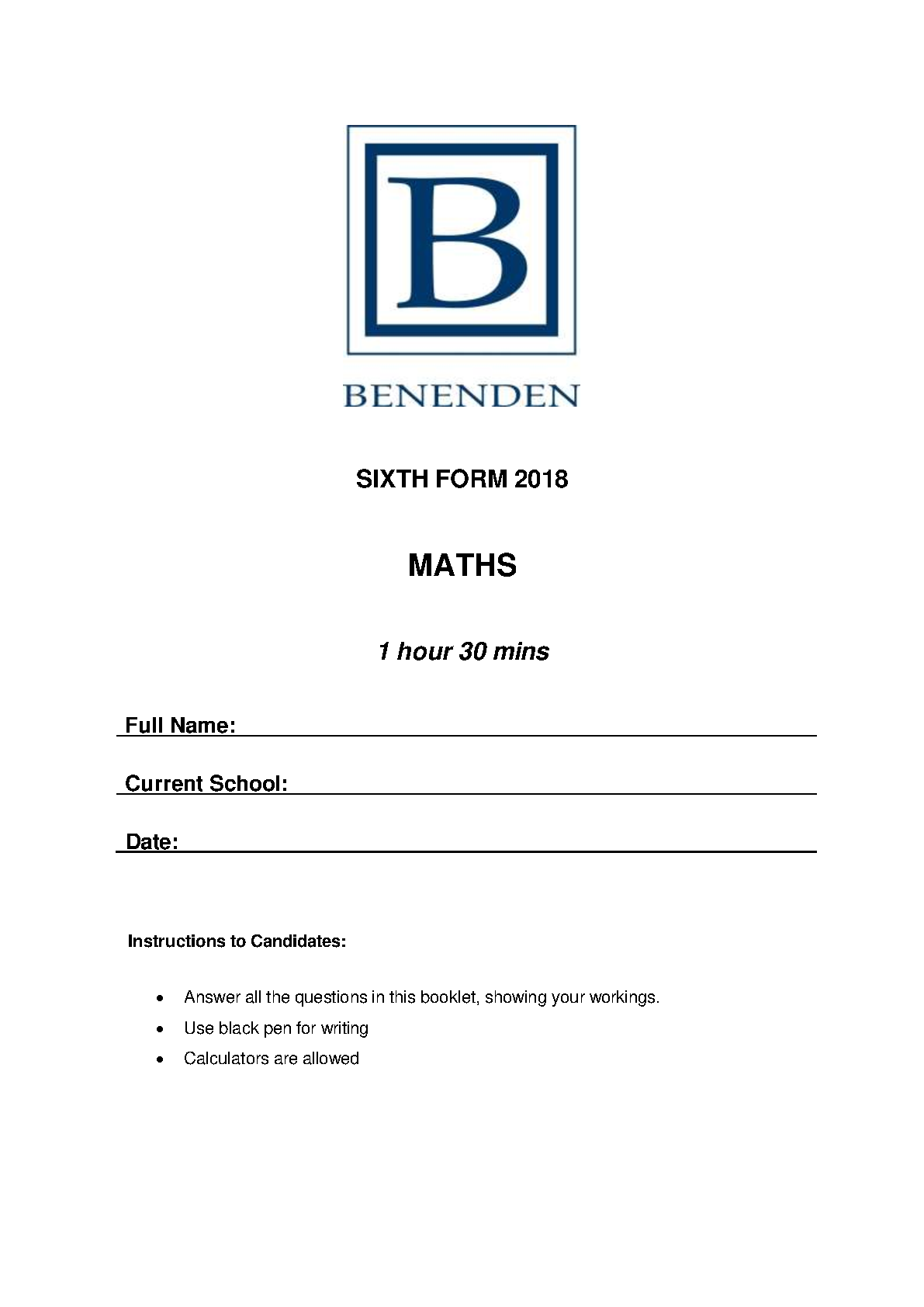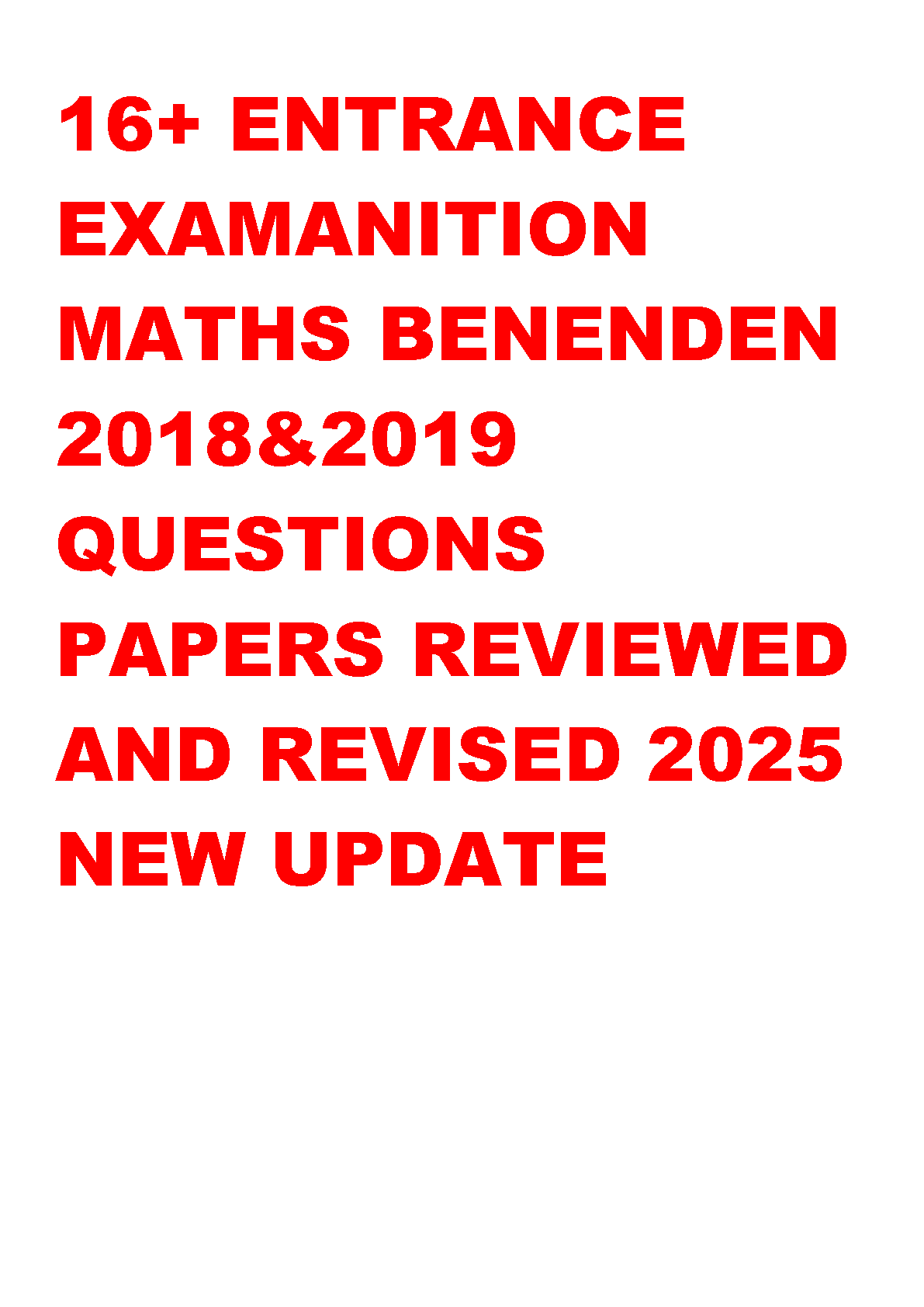 Benenden 16+ Maths Entrance Exam Past Papers 2018 & 2019 | Latest 2025/2026 Edition to Help You Pass First Time