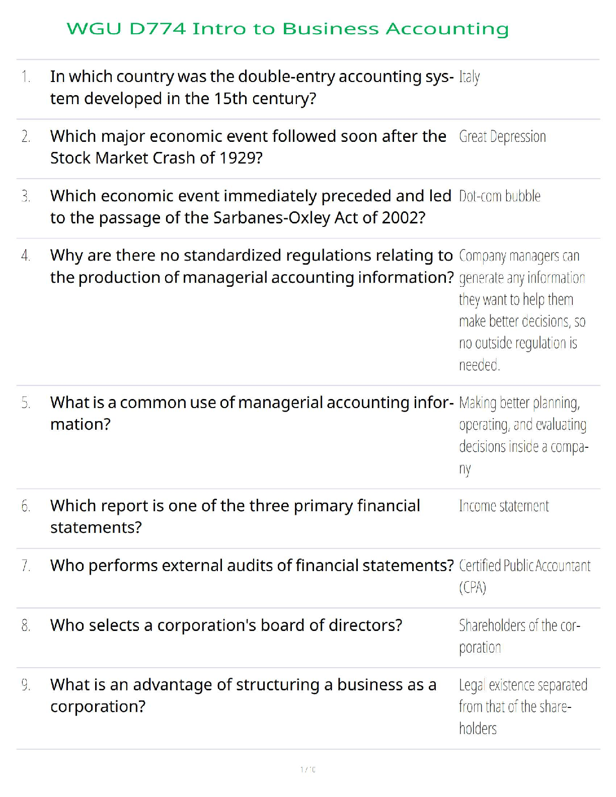 Master the fundamentals of WGU D774 Intro to Business Accounting with our comprehensive test bank, based on the 20th Edition of 'Financial & Managerial Accounting' by Williams, Haka, and Bettner. This essential study resource provides a complete collection of exam-style questions with verified answers, covering all core concepts from double-entry bookkeeping to financial statements and corporate structure. Designed specifically for WGU students, this guide will help you ace your exams, understand key topics deeply, and pass D774 on your first attempt. Get instant access to the tools you need for success!