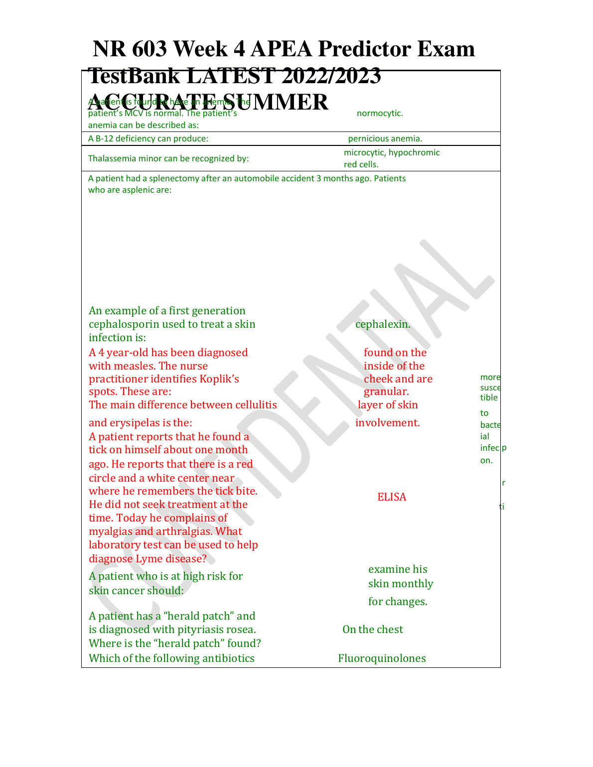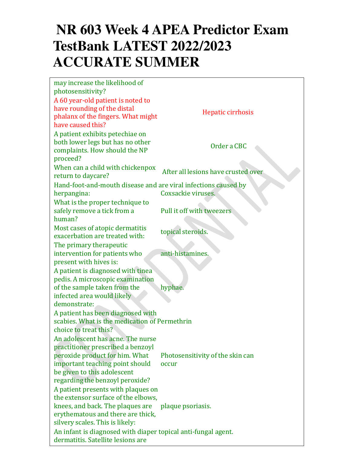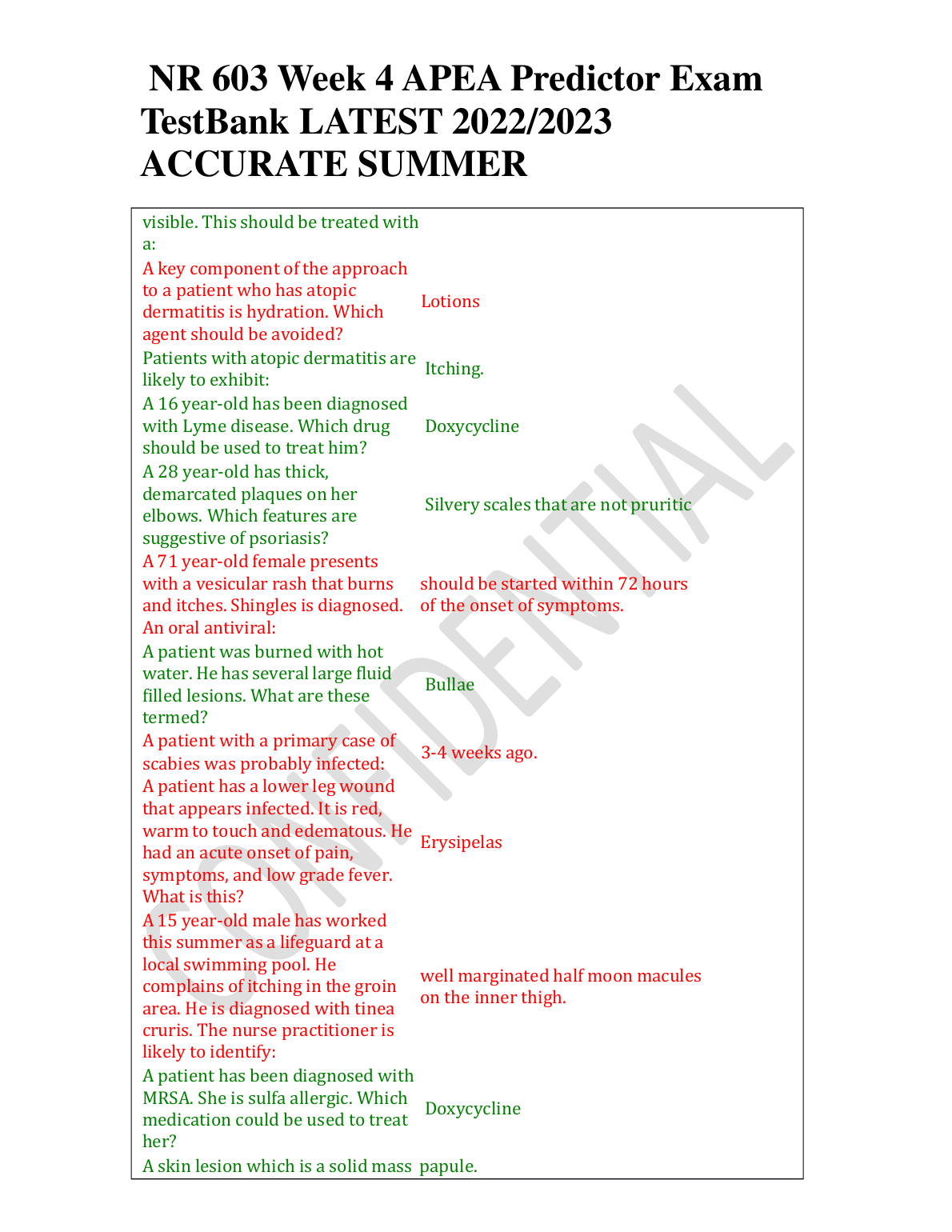 NR 603 Week 4 APEA Predictor Exam TestBank LATEST 2022/2023 ACCURATE SUMMER EXAMS. DOWNLOAD ON www.hackedexams.com INSTANTLY.