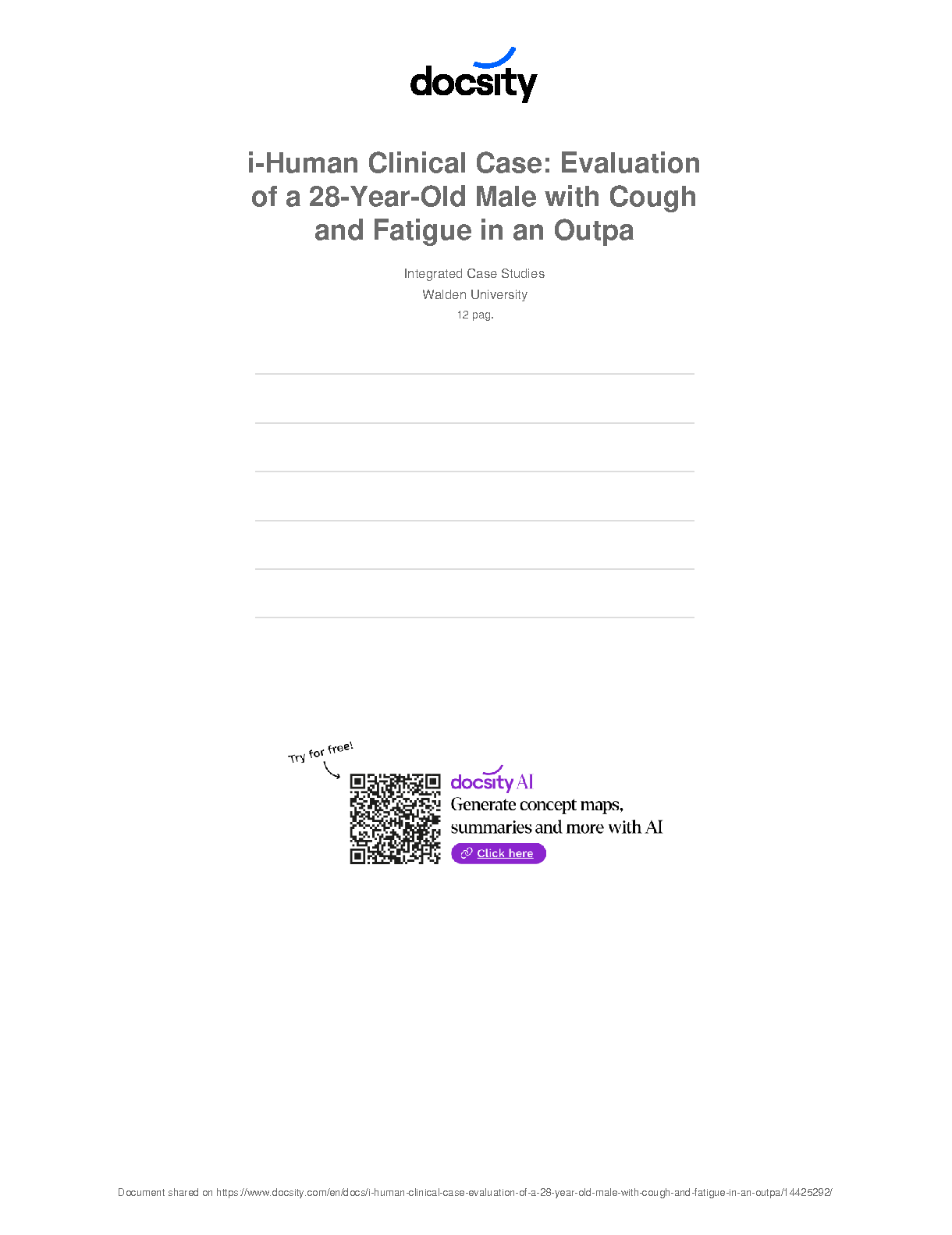 i-Human Case Study: Evaluation of a 28-Year-Old Male with Cough and Fatigue | Walden University Guide 2025/2026