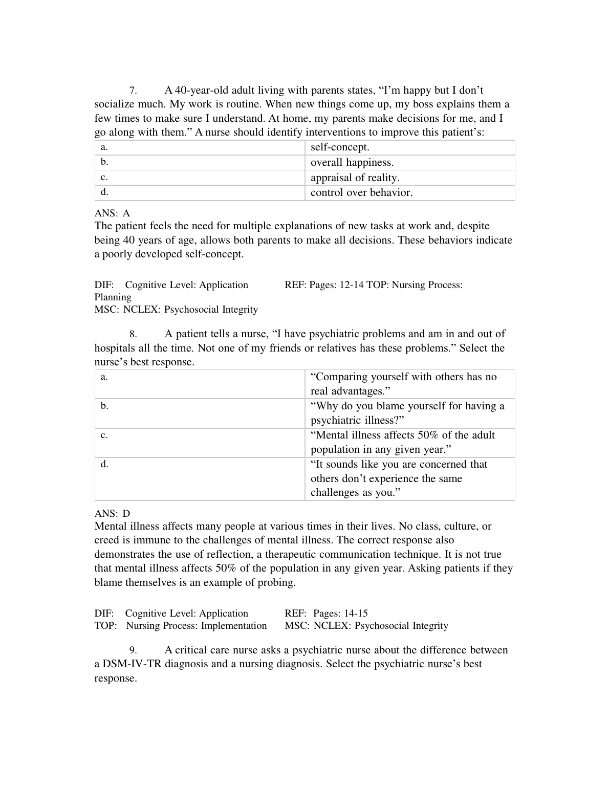 Test Bank for Psychiatric Mental Health Nursing: Concepts of Care in Evidence-Based Practice 8th Edition by Mary C. Townsend
