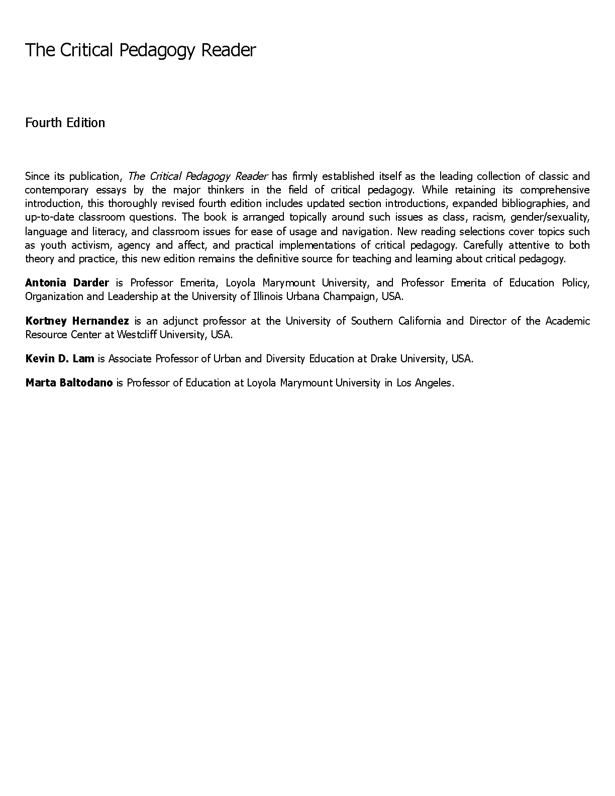 The Critical Pedagogy Reader, 4th Edition by Darder, Hernandez, Lam & Baltodano | 2025/2026 Exam Guide to Pass on Your First Try