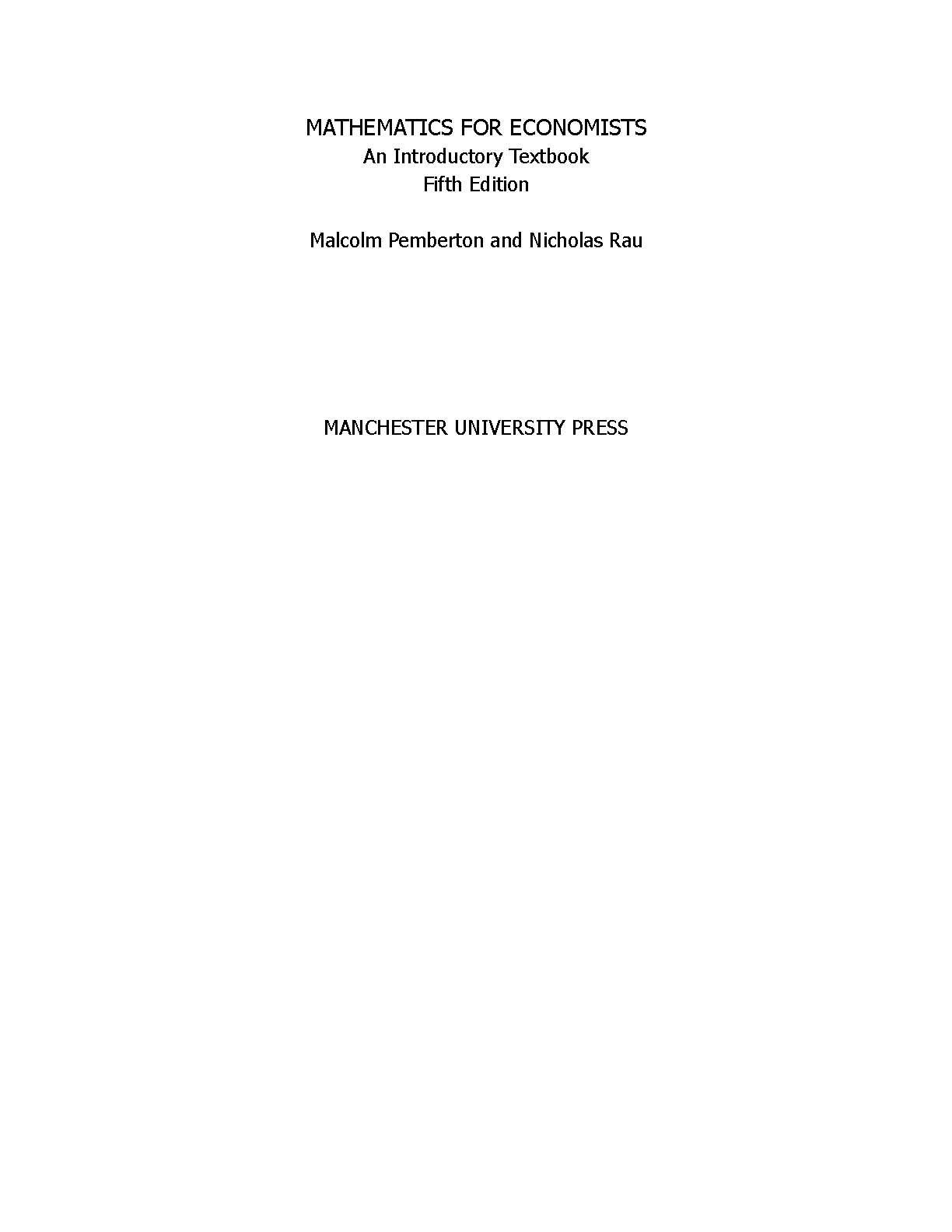 Test Bank for Mathematics for Economists: An Introductory Textbook, 5th Edition by Malcolm Pemberton & Nicholas Rau