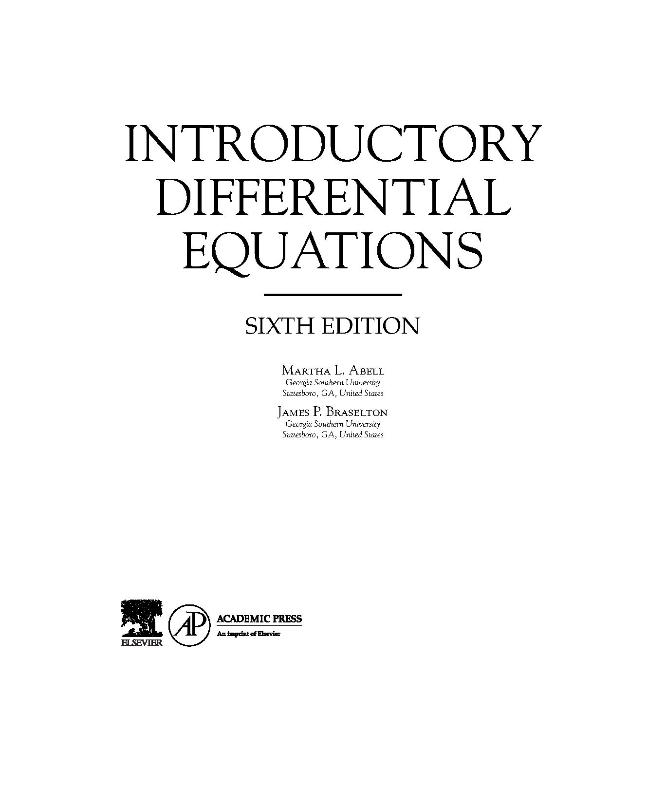 Test Bank for Introductory Differential Equations, 6th Edition by Martha L. Abell, James P. Braselton