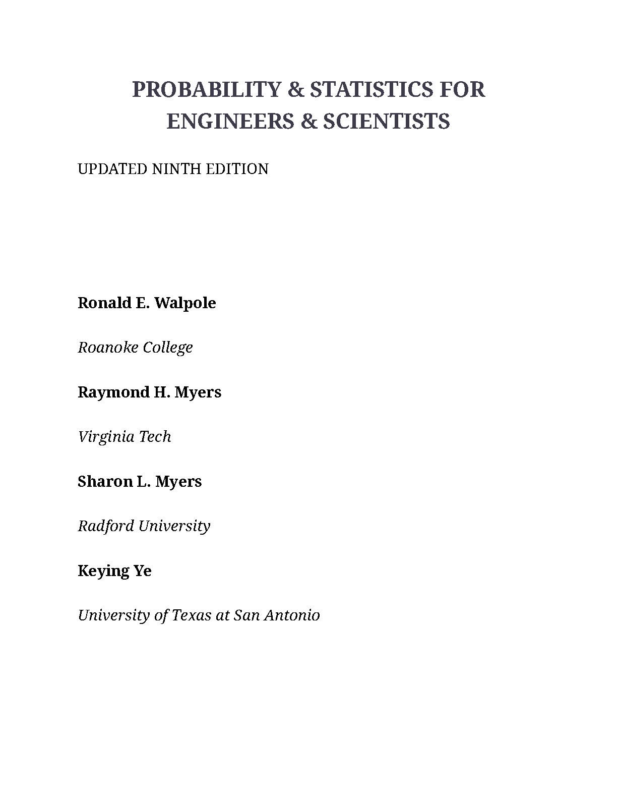 Test Bank for Probability & Statistics for Engineers & Scientists, Updated 9th Edition by Ronald E. Walpole, Raymond H. Myers, Sharon L. Myers, Keying Ye