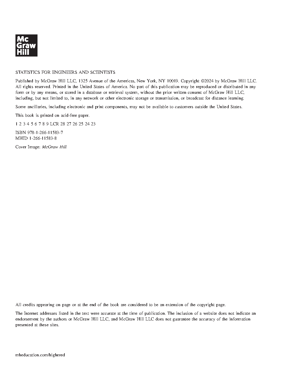 Test Bank for Statistics for Engineers and Scientists, 6th Edition by William Navidi