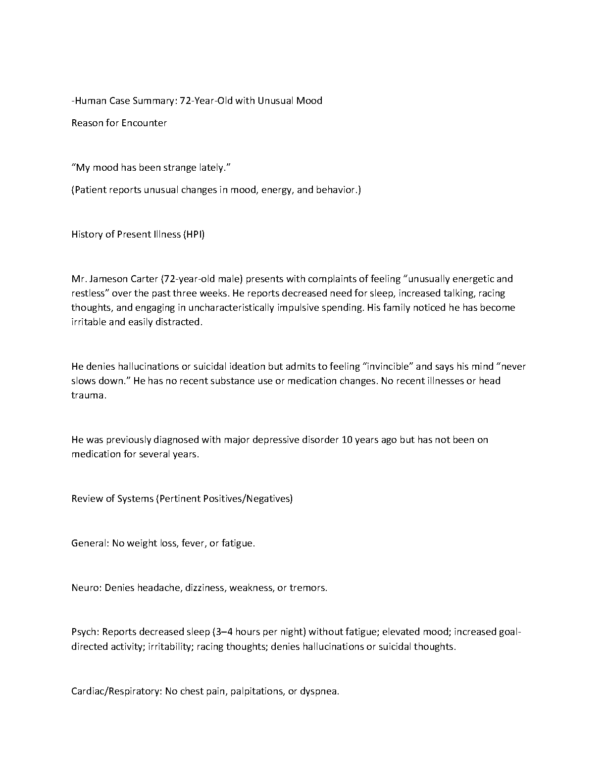 i-Human Week 8 Case Study: Bipolar I Disorder (Manic Episode) | Full SOAP Note & Summary for 72-Year-Old Patient | Latest 2025/2026 Study Guide to Pass First Try