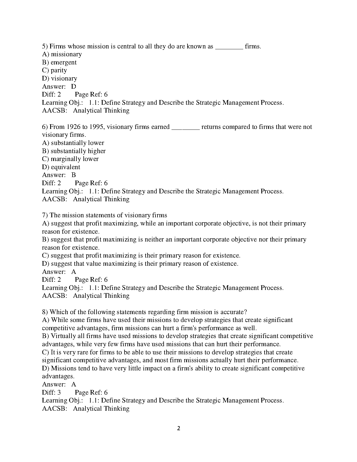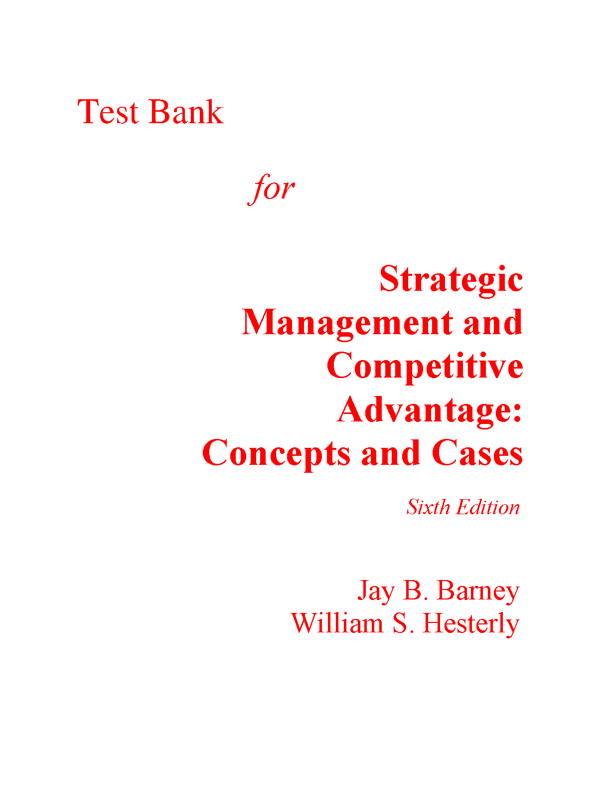 Test Bank for Strategic Management and Competitive Advantage: Concepts and Cases, 6th Edition by Jay B. Barney, William S. Hesterly
