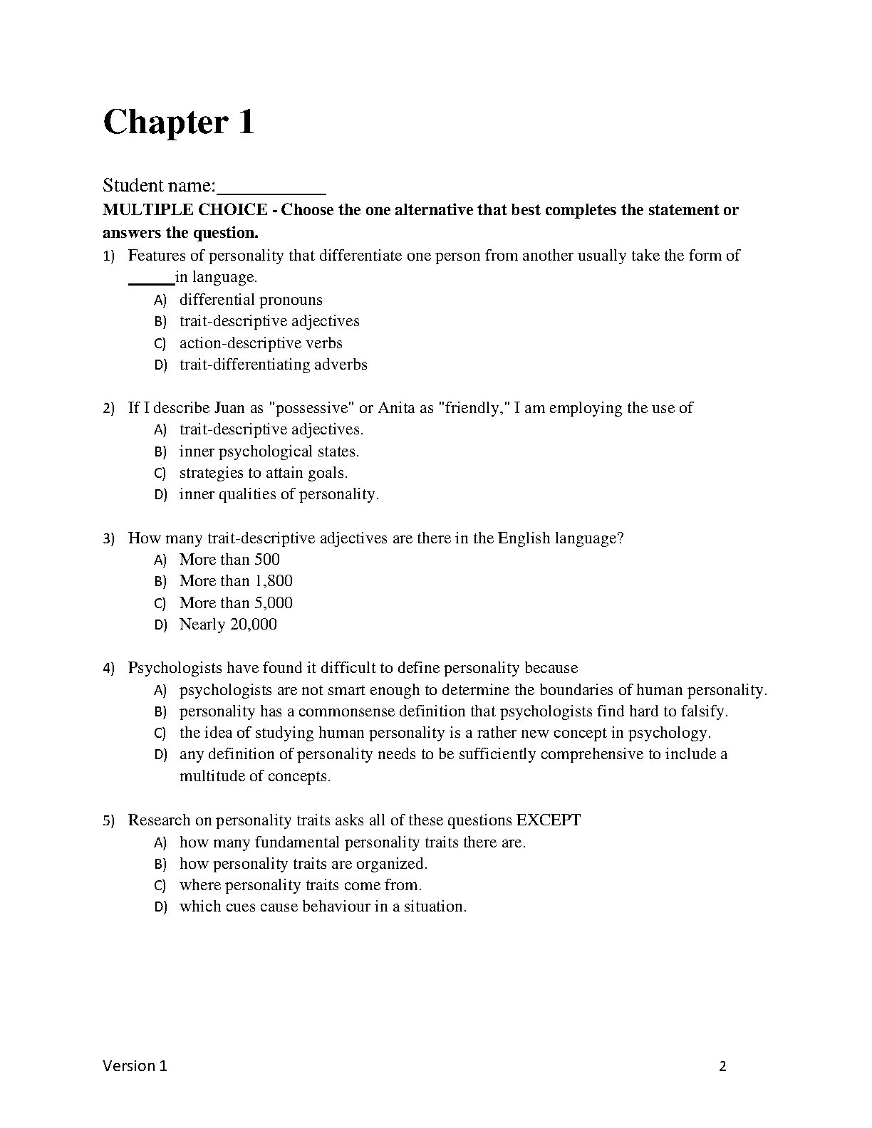 Test Bank for Personality Psychology: Domains of Knowledge About Human Nature, 3rd Canadian Edition by Randy J. Larsen, David M. Buss, D. Brett King