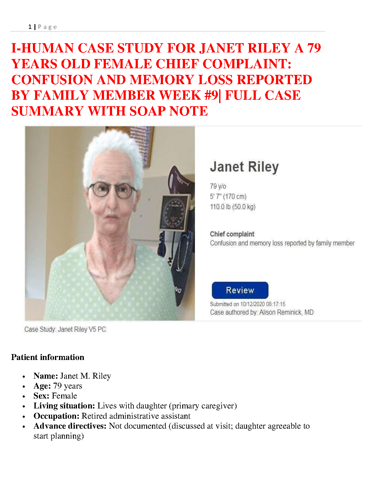 i-Human Janet Riley V5 PC Case Study by Alison Reminick, MD | Latest 2025/2026 Full Case Summary & SOAP Note for Memory Loss