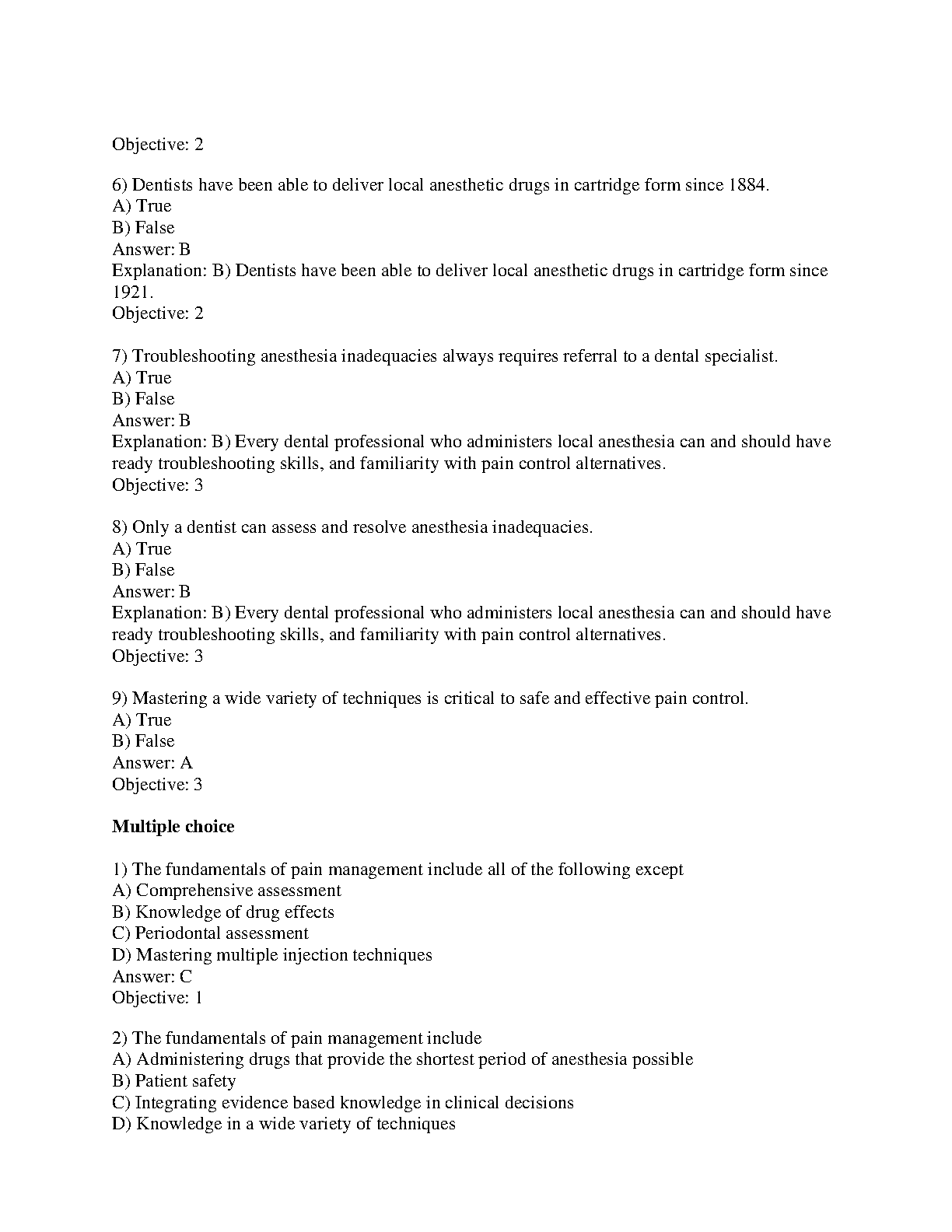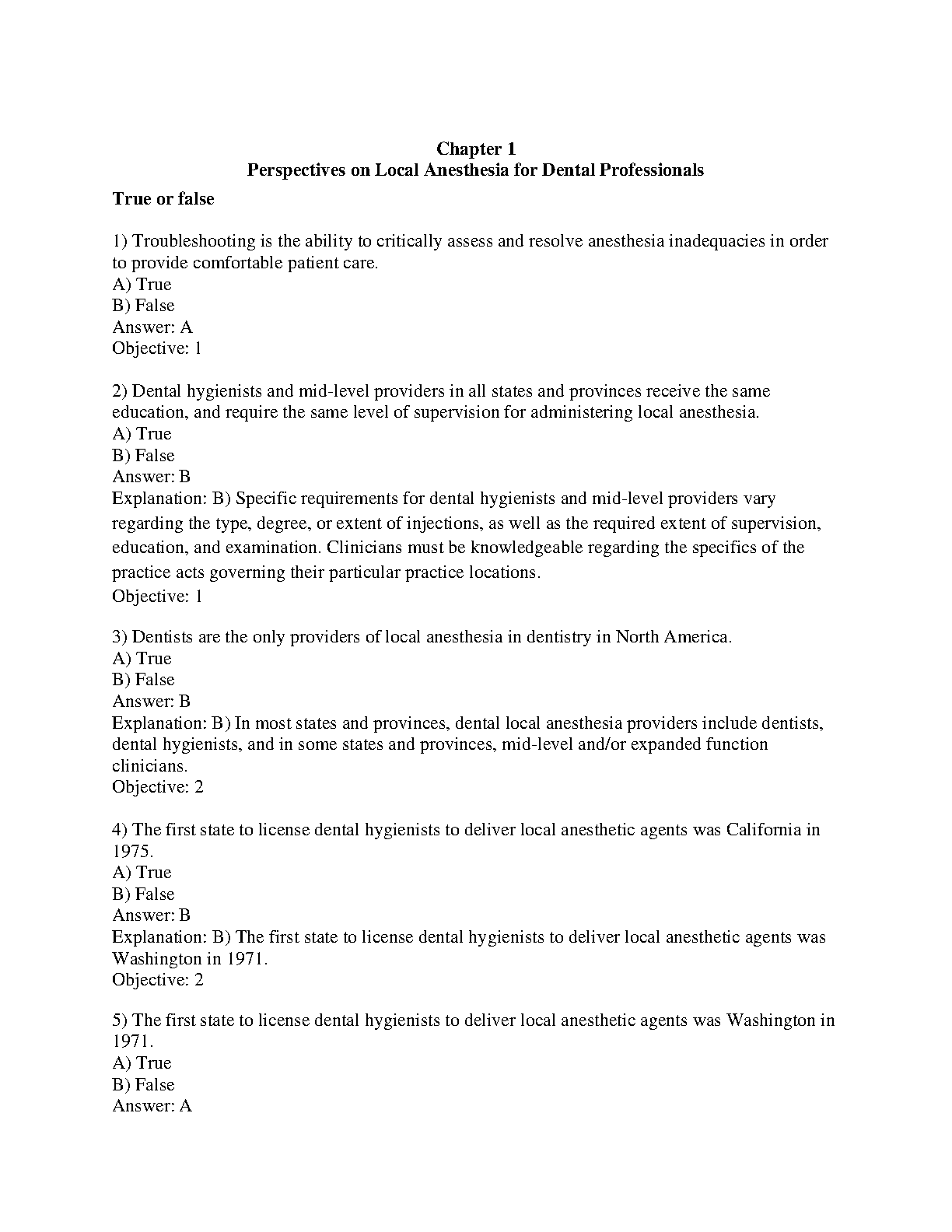 Test Bank for Local Anesthesia for Dental Professionals, Revised 2nd Edition by Kathy Bassett, Arthur DiMarco, and Doreen Naughton