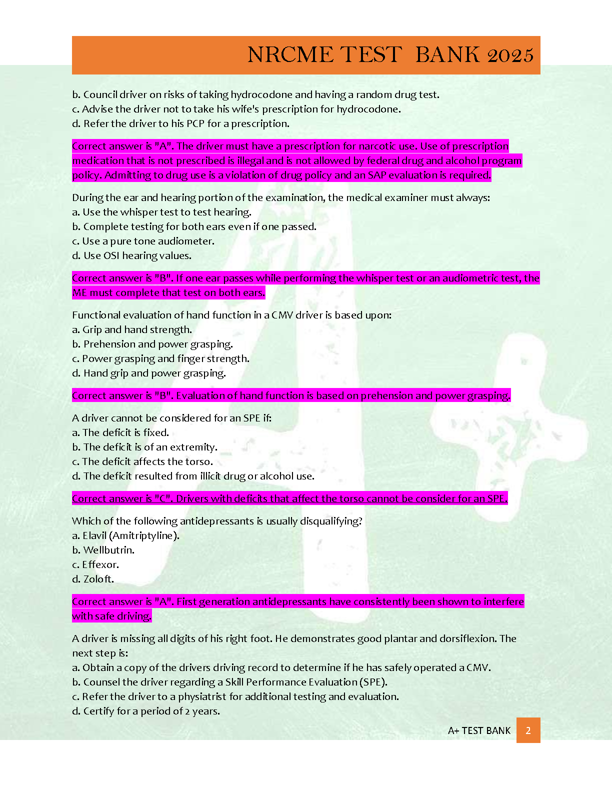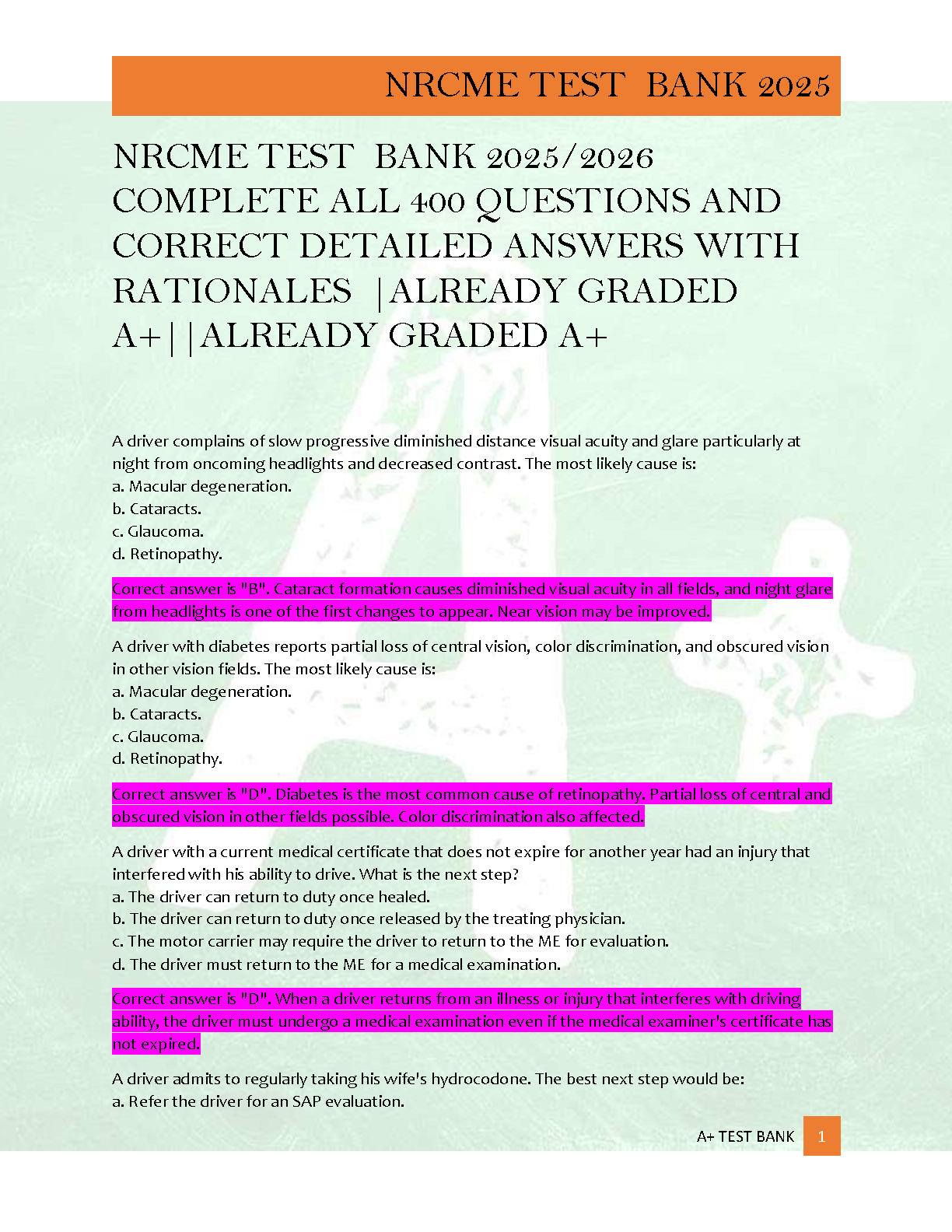 NRCME Test Bank 2025/2026: The Ultimate Study Guide with 400 A+ Graded Questions, Answers, and Detailed Rationales for FMCSA Certification