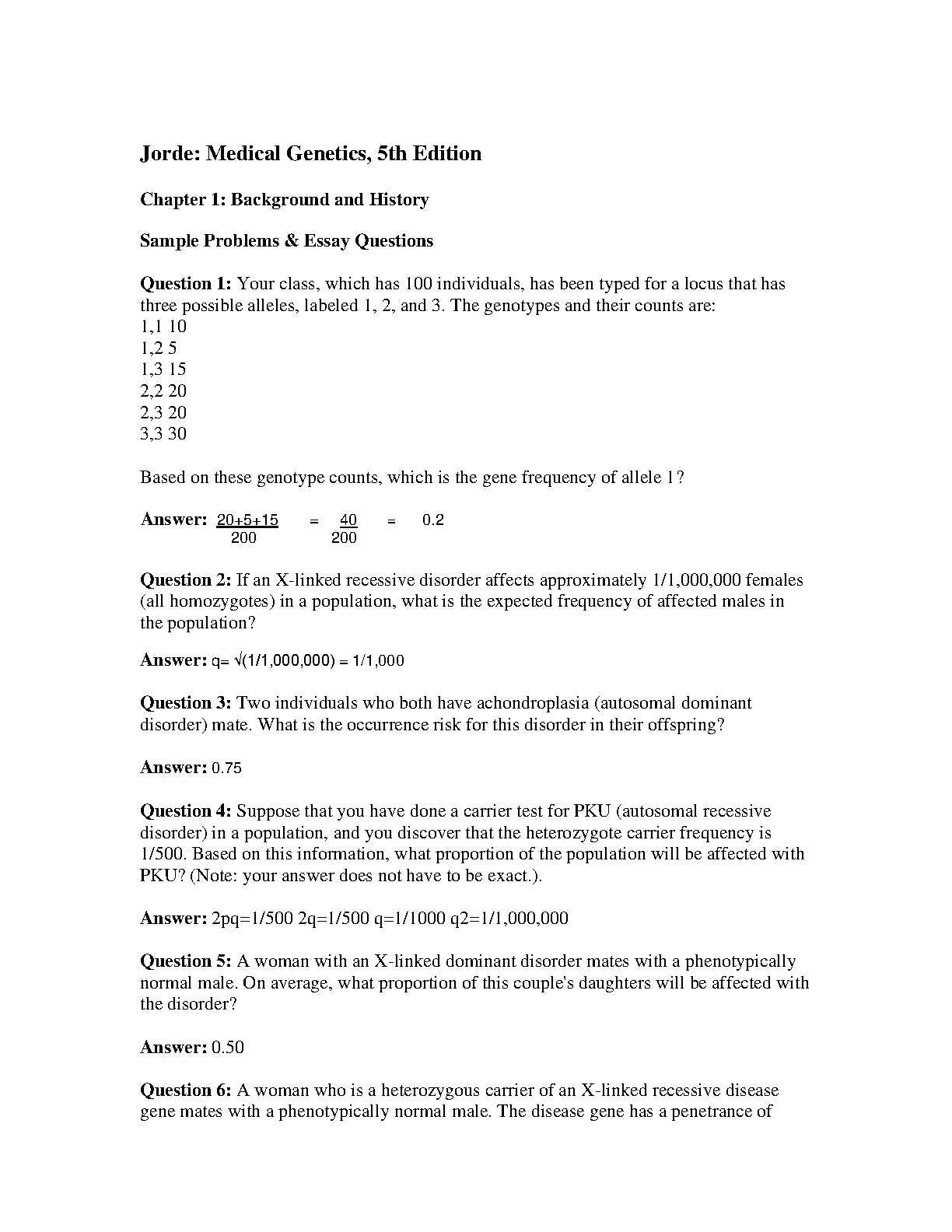 Test Bank for Medical Genetics, 5th Edition by Lynn B. Jorde, John C. Carey, and Michael J. Bamshad