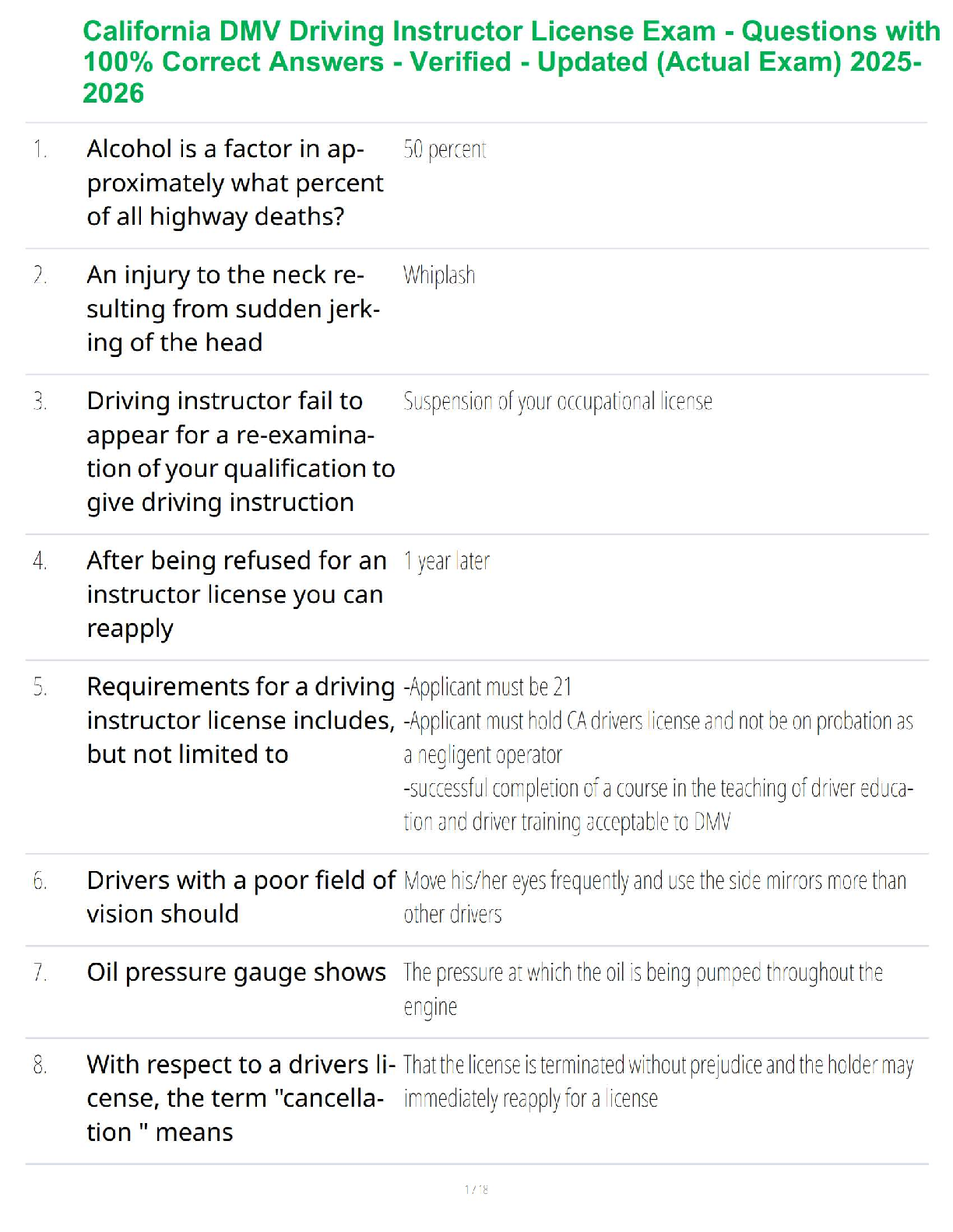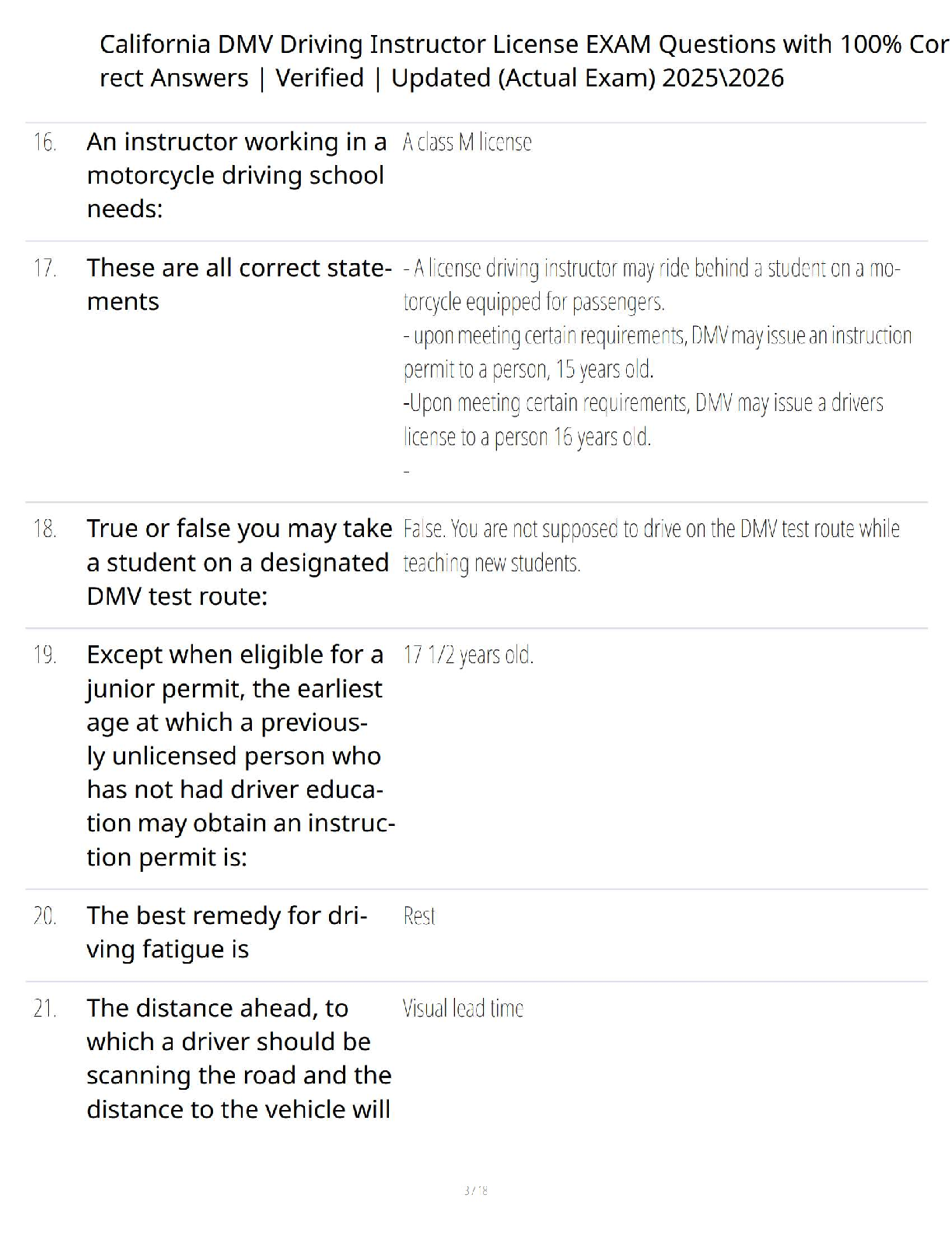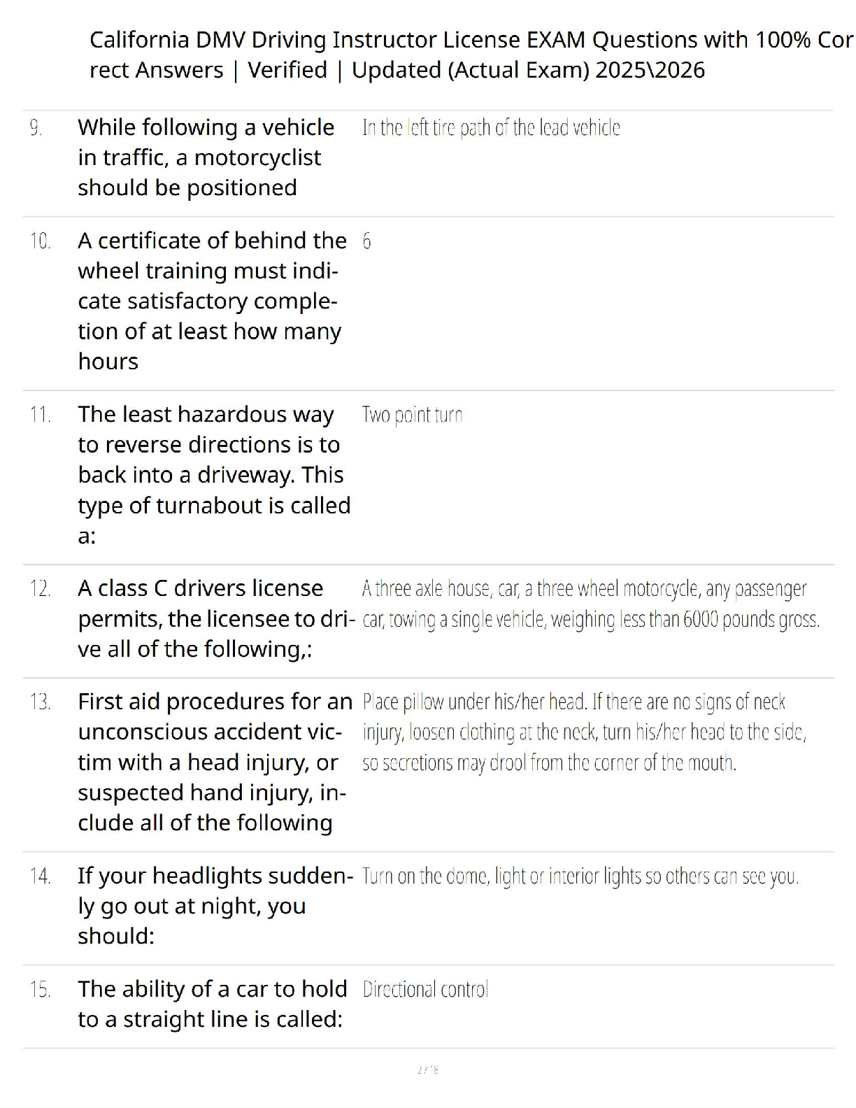 California DMV Driving Instructor License Exam Test Bank 2025-2026: Verified Questions & 100% Correct Answers to Pass on Your First Try