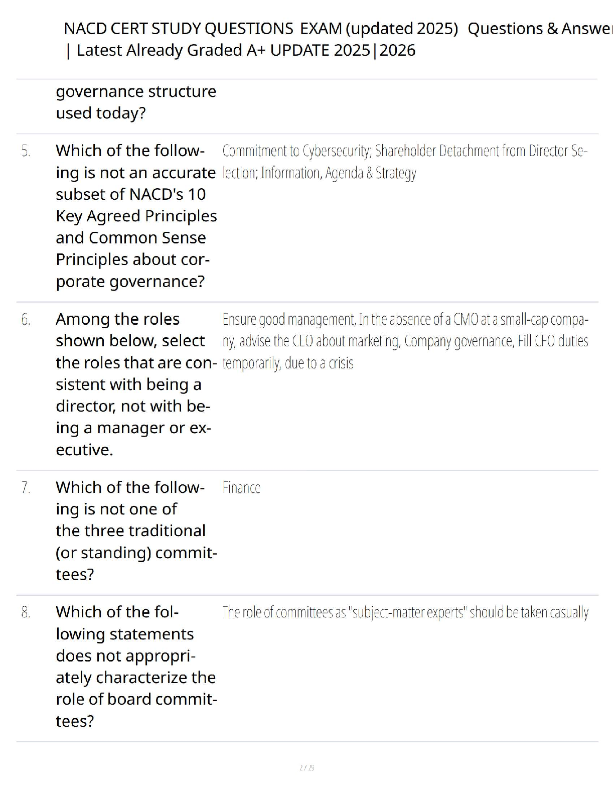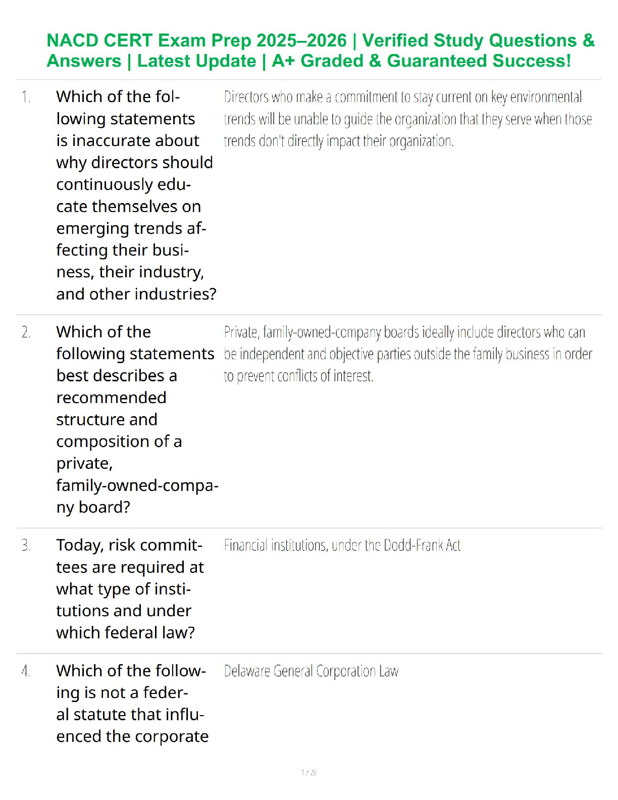 NACD CERT Exam Prep Test Bank 2025-2026: A+ Graded Questions & Verified Answers for Guaranteed Success