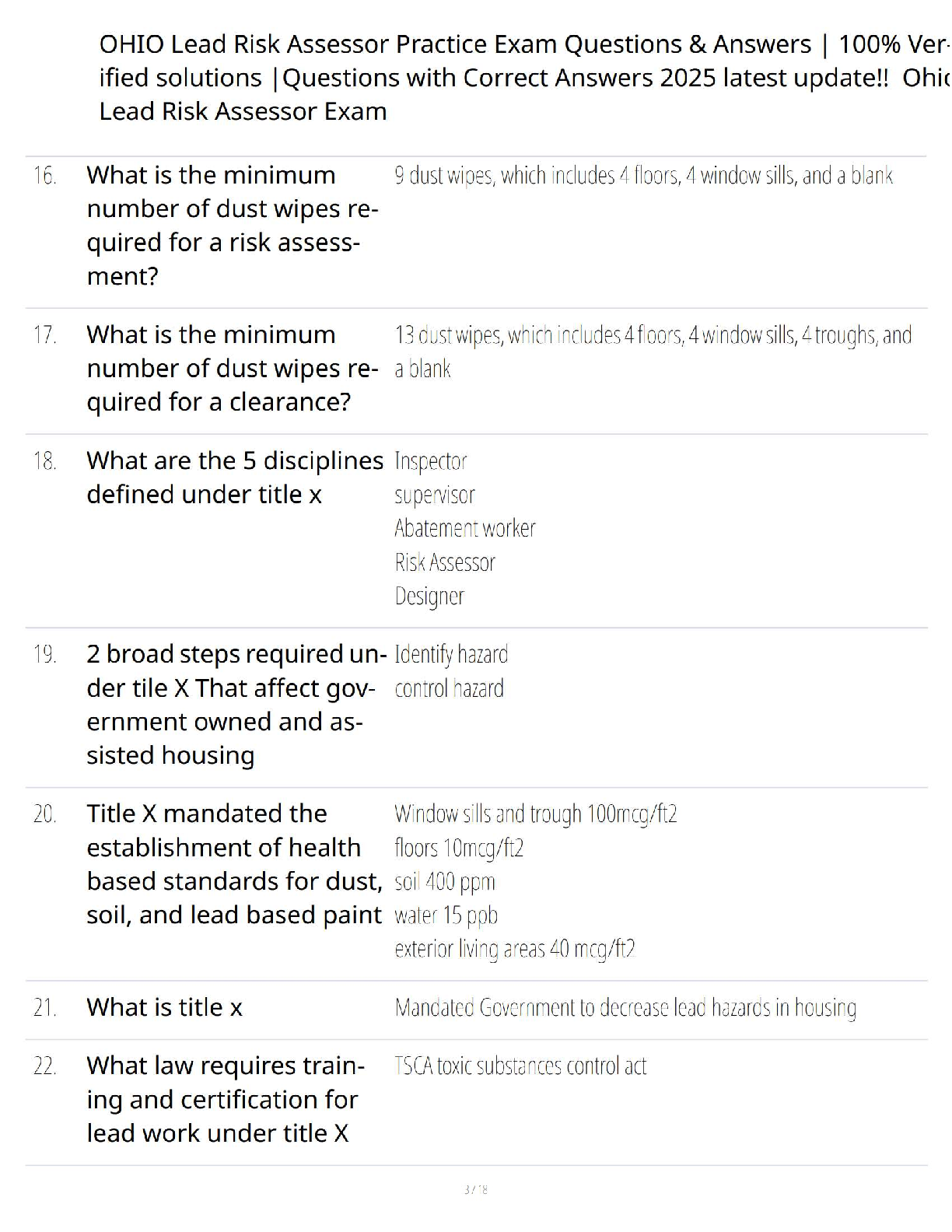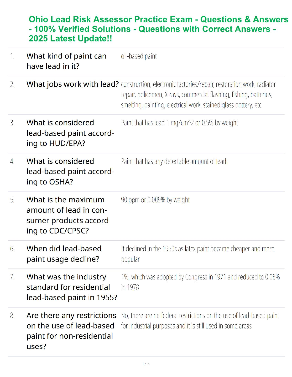 Ohio Lead Risk Assessor Exam 2025 Test Bank: A Complete Q&A Guide with 100% Verified Solutions for Guaranteed Success
