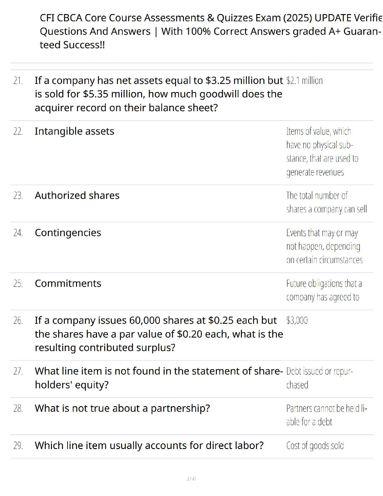 CFI CBCA Core Course 2025 Test Bank: Master the Exam with Verified Questions & Answers from the Corporate Finance Institute (CFI) Team