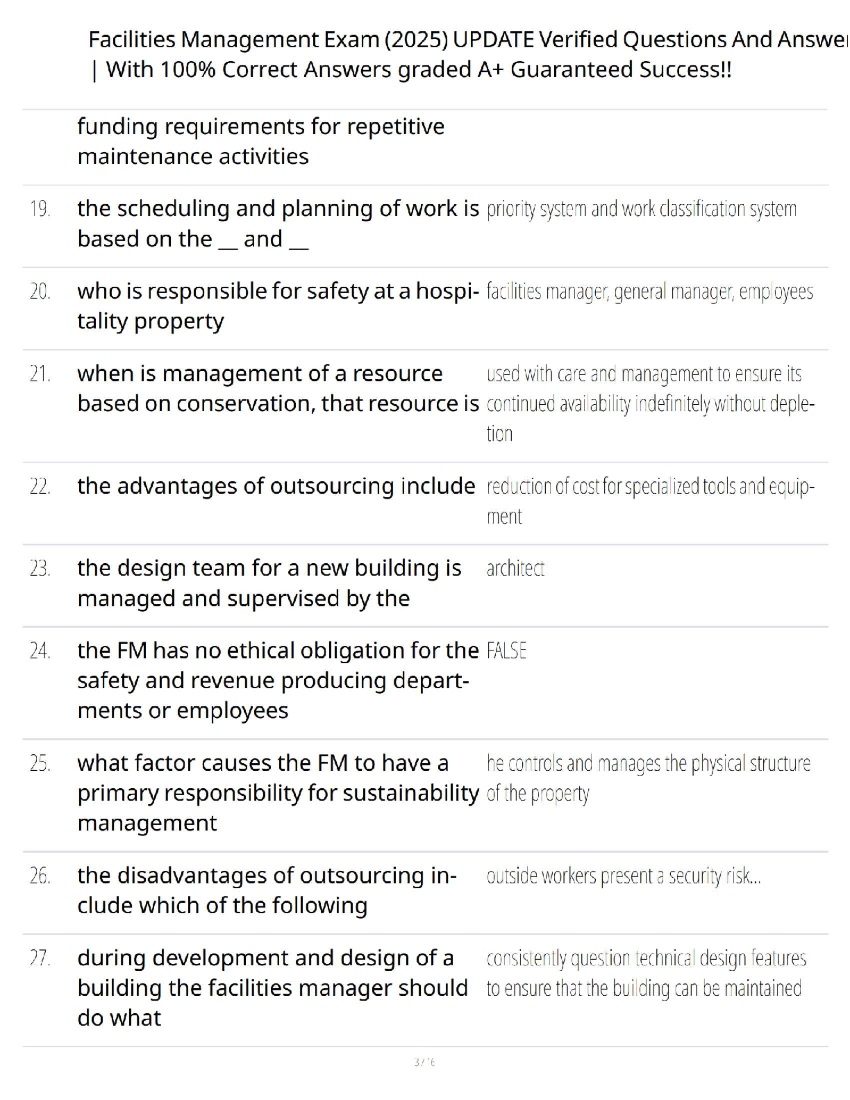 Facilities Management Exam Test Bank 2025 - Complete Questions and Verified Answers for A+ Success