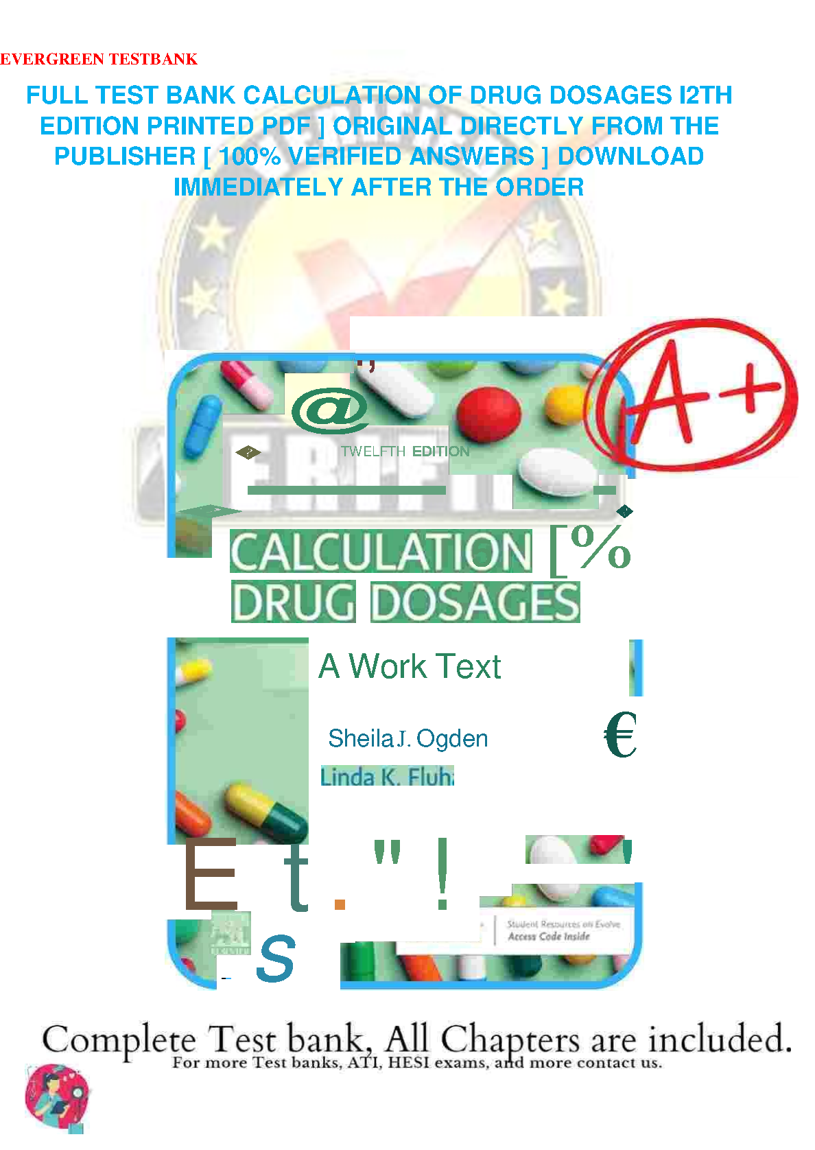 Master drug dosage calculations with the official Test Bank for 'Calculation of Drug Dosages: A Work Text, 12th Edition' by Sheila J. Ogden and Linda K. Fluharty. This comprehensive resource, sourced directly from the publisher, provides 100% verified questions and answers covering all chapters. Perfect for nursing and healthcare students aiming to excel in their exams. Gain instant access to this downloadable PDF and build the confidence you need to succeed. Don't just study—practice with the real questions and ace your course!