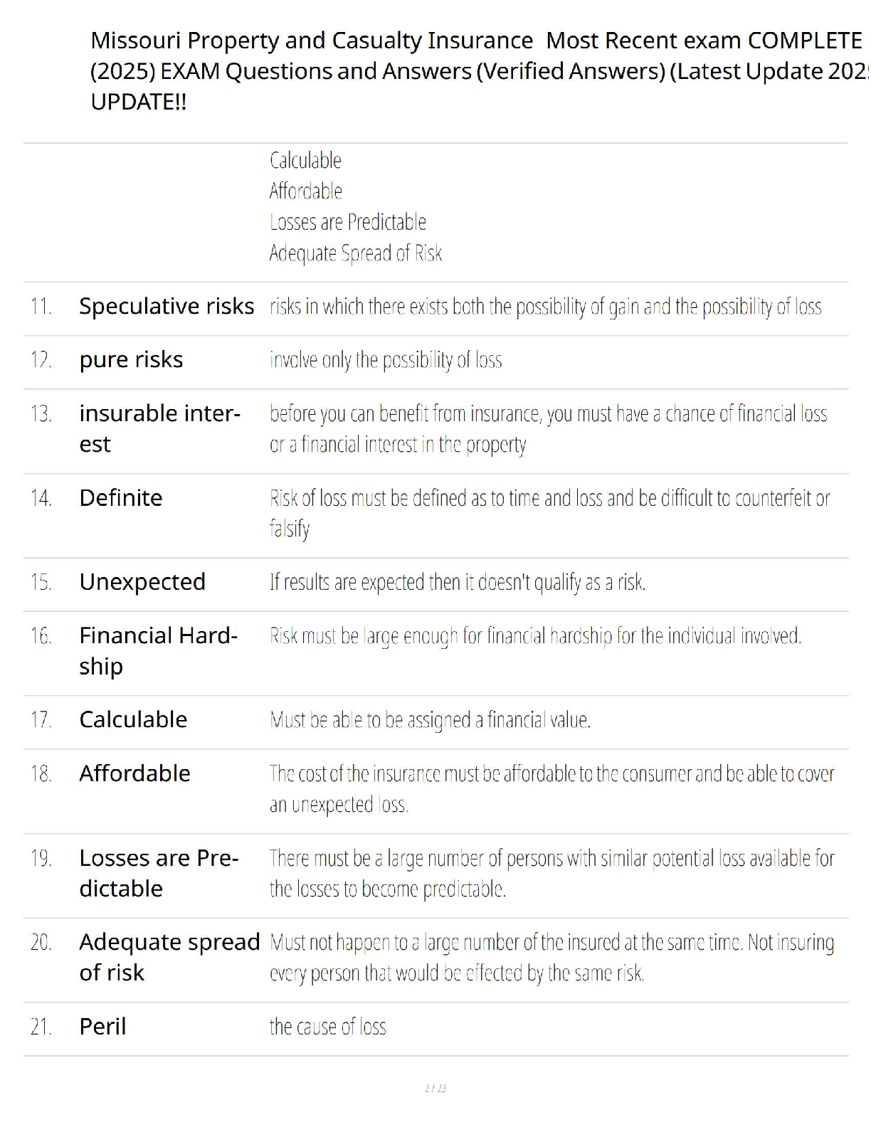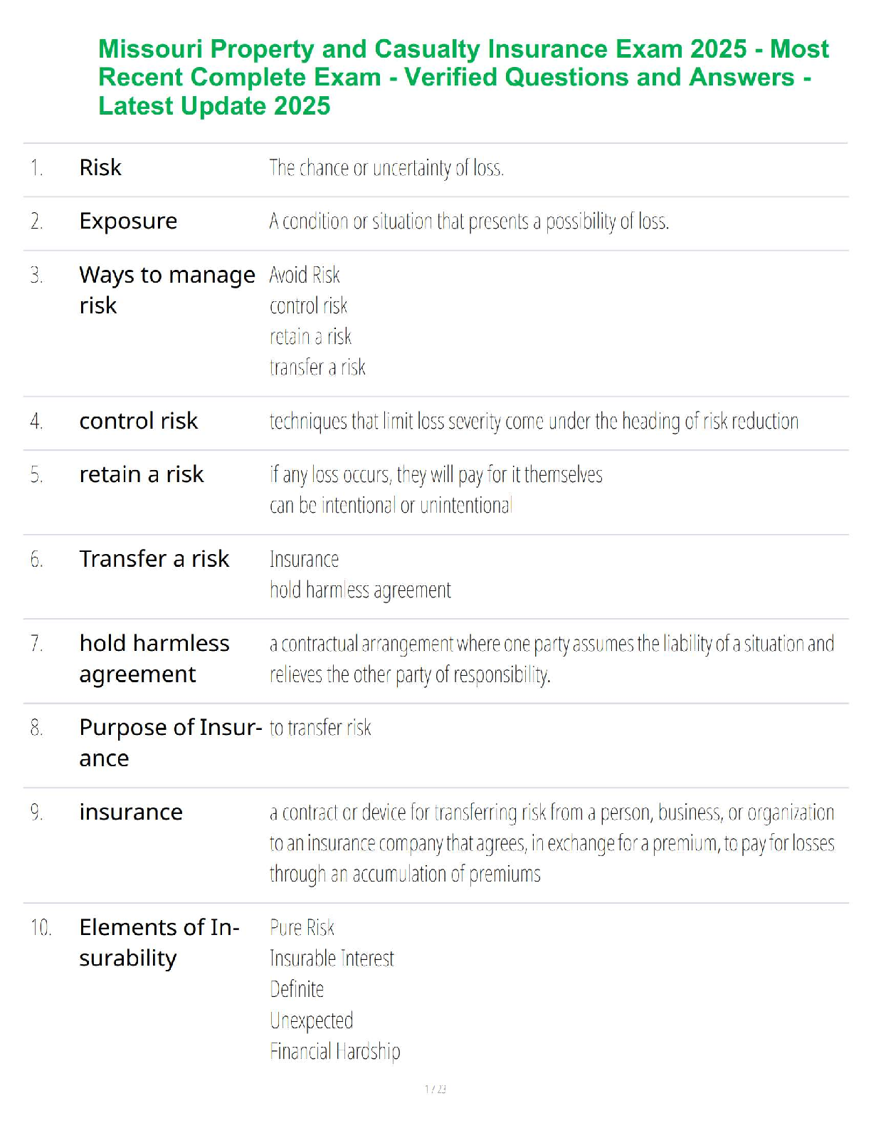 Missouri Property and Casualty Insurance Exam 2025-2026: Comprehensive Study Guide with Verified Questions & Answers to Ensure First-Attempt Success