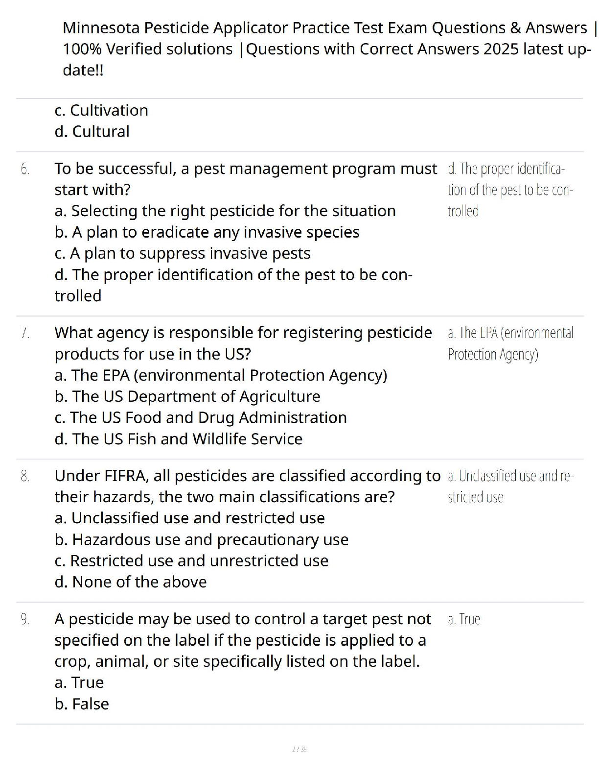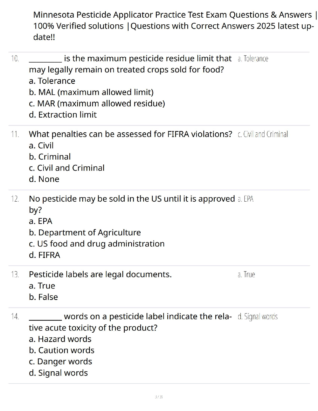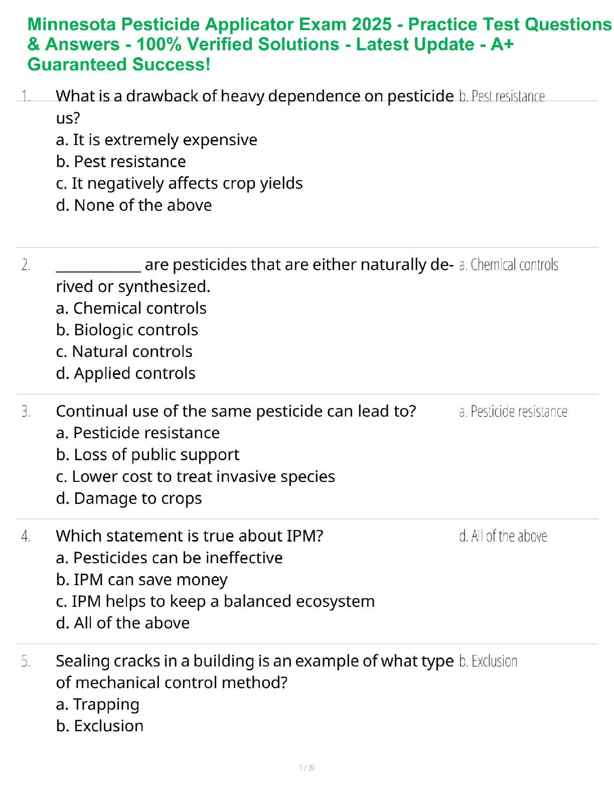 Minnesota Pesticide Applicator Exam 2025 Test Bank: A+ Graded Practice Questions and Verified Answers