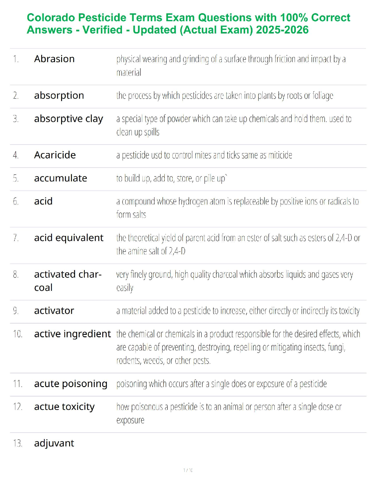 Prepare to ace your Colorado Pesticide Terms Exam with our latest 2025-2026 study guide. This essential resource provides a comprehensive list of crucial pesticide terminology, complete with 100% correct and verified answers. Designed specifically to mirror the actual exam, this guide is your key to mastering the material and passing on your very first attempt. Stop worrying about resits and start studying smart with the most up-to-date and reliable preparation tool available.