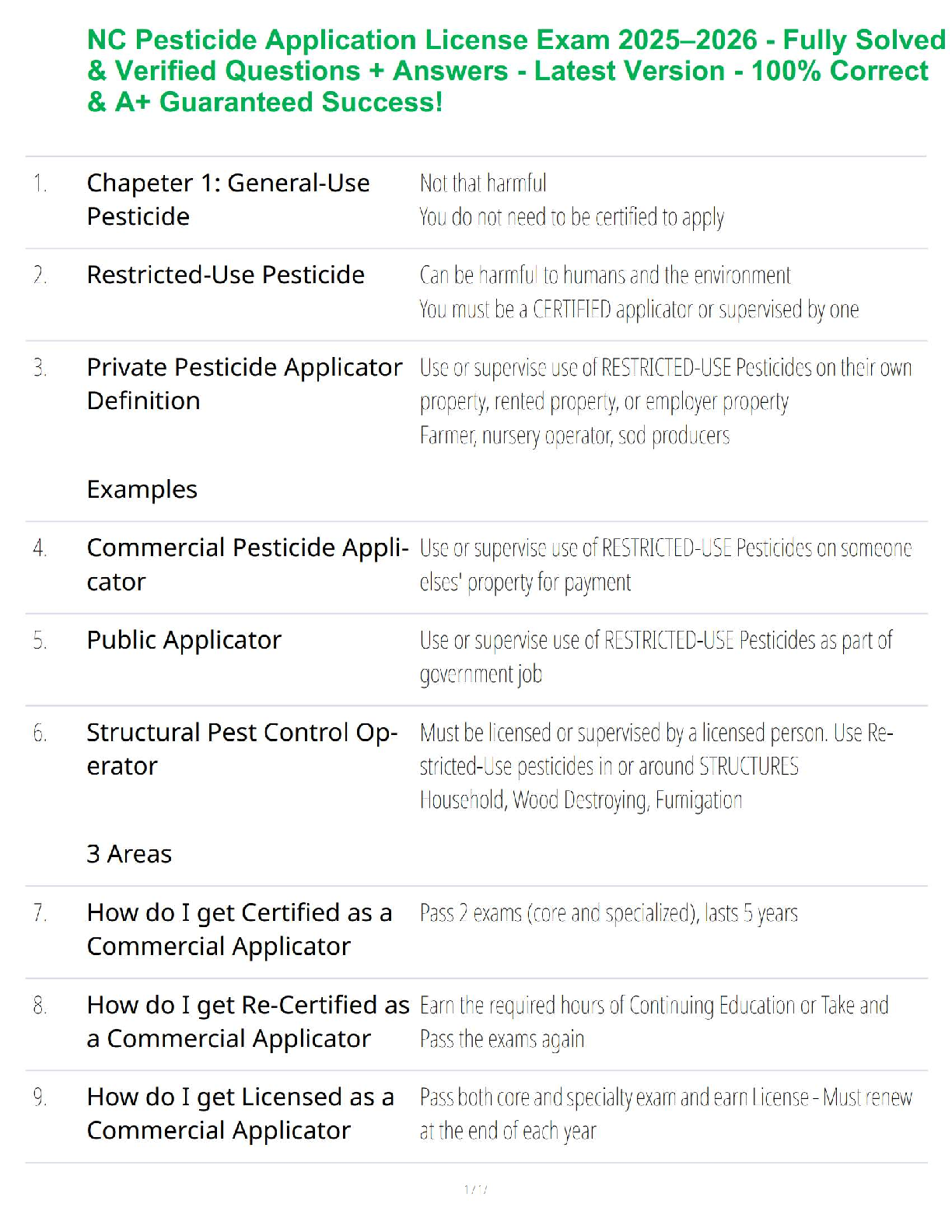 Master the NC Pesticide Application License Exam 2025-2026: A Comprehensive Test Bank with Verified Questions and Answers for First-Attempt Success