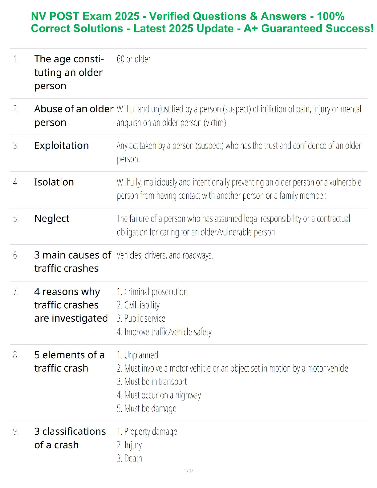 NV POST Exam 2025 Test Bank | Verified Questions and Answers Study Guide