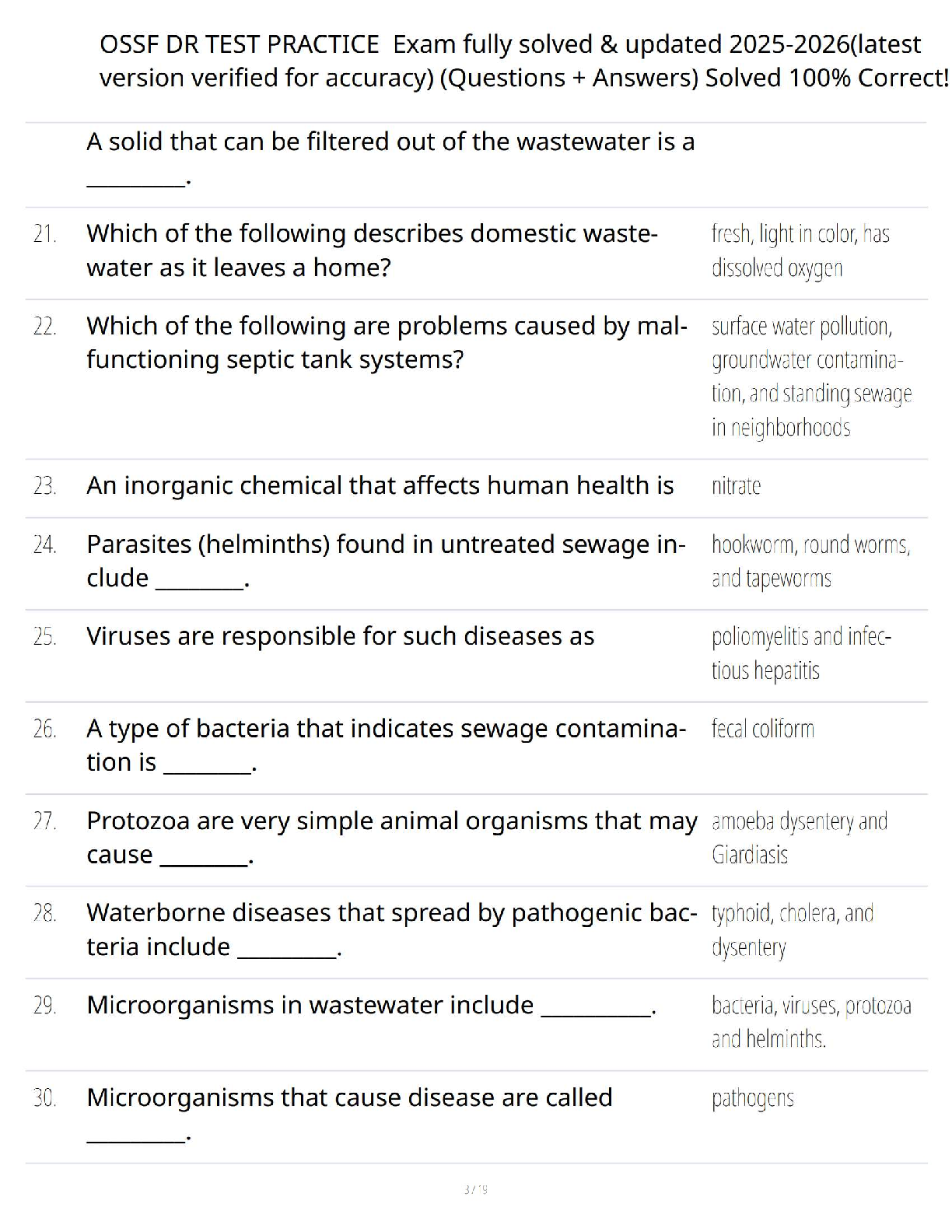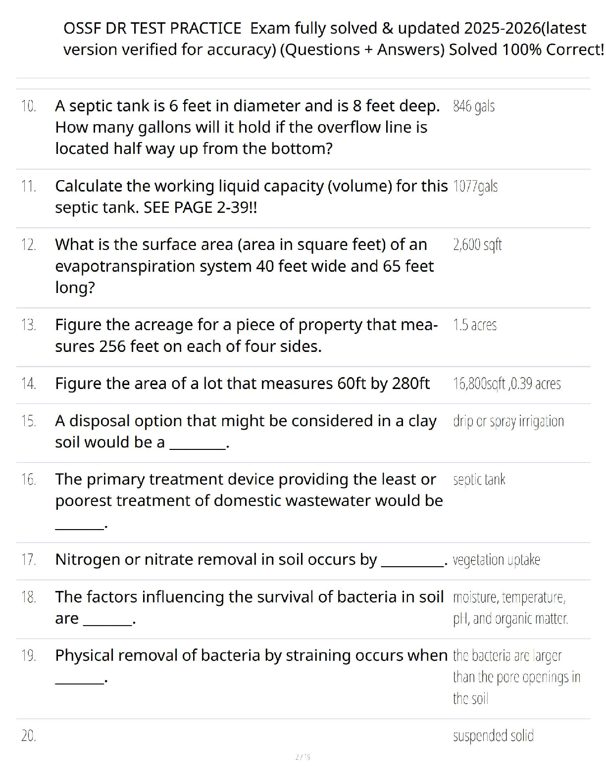 OSSF DR Test Bank 2025-2026: Comprehensive Q&A Study Guide for On-Site Sewage Facility Exam