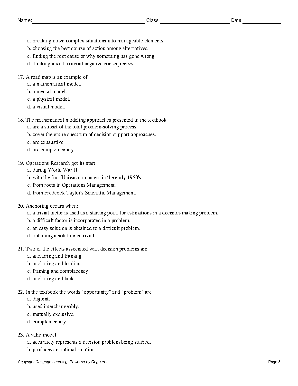 Unlock your academic potential with the official Test Bank for 'Spreadsheet Modeling and Decision Analysis: A Practical Introduction to Business Analytics', 9th Edition, by Cliff T. Ragsdale. This complete collection covers all chapters from 1 to 15 and is packed with a diverse range of exam-style questions, including true/false and multiple-choice formats. Each chapter comes with a corresponding answer key, providing immediate feedback to enhance your learning. This is the ultimate study resource to master complex concepts, ace your exams, and gain a thorough understanding of business analytics.