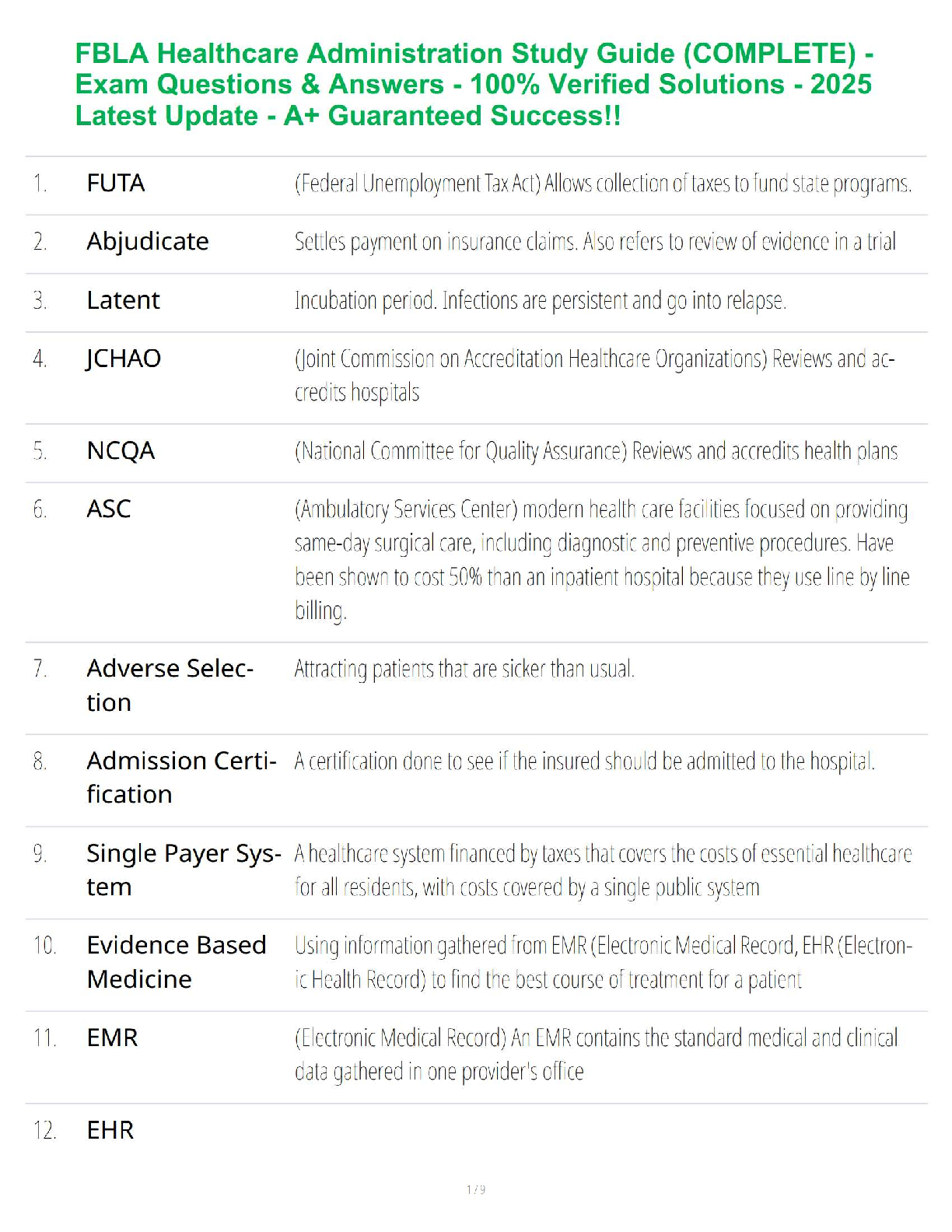 Unlock A+ success in your FBLA Healthcare Administration exam with our ultimate 2025/2026 study guide. This comprehensive resource is packed with the latest exam questions and 100% verified answers, covering all essential topics and key terminologies. Designed for students aiming to pass on their first attempt, this guide simplifies complex concepts into an easy-to-follow Q&A format. Master the material, avoid resits, and confidently step into your exam. Get your hands on the definitive preparation tool for the FBLA Healthcare Administration competition today!