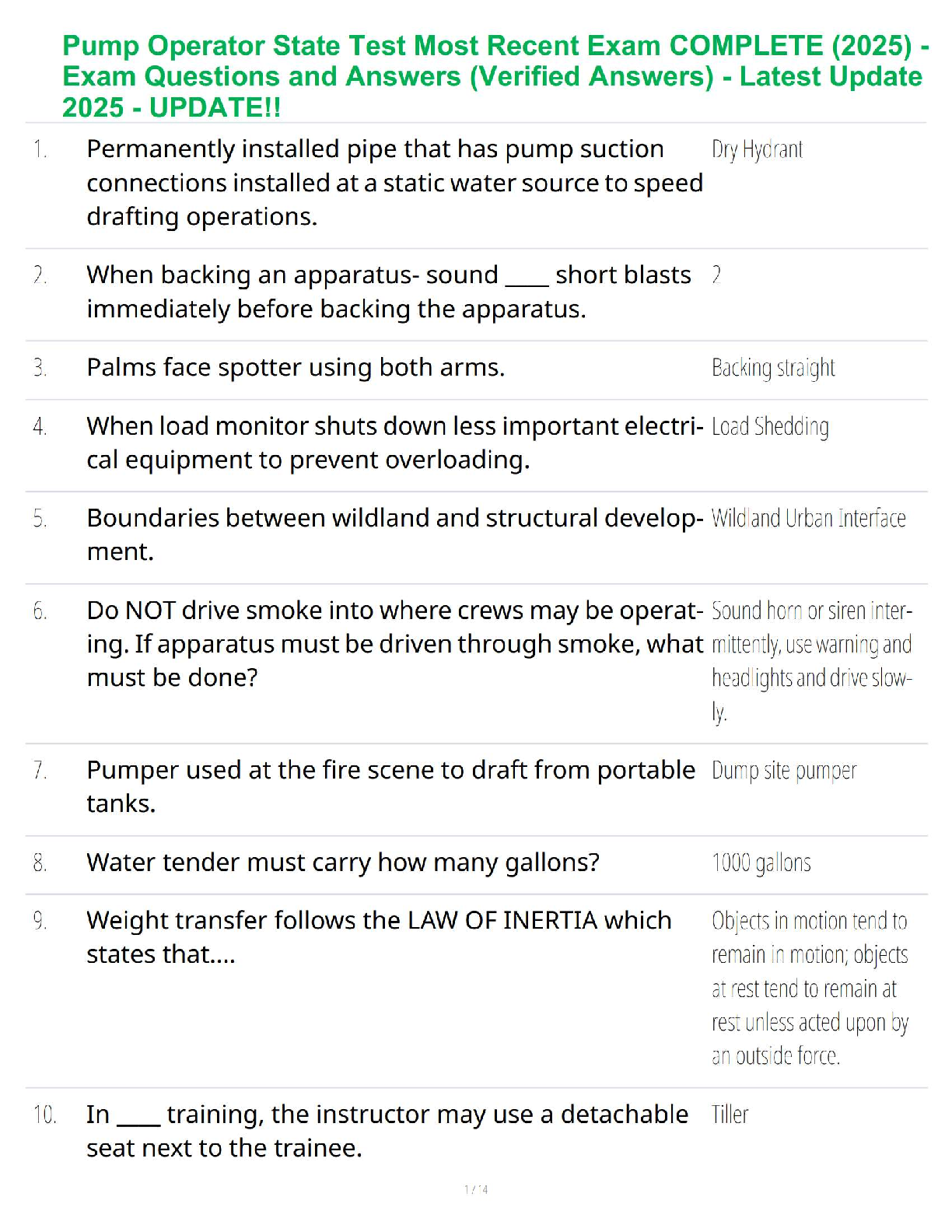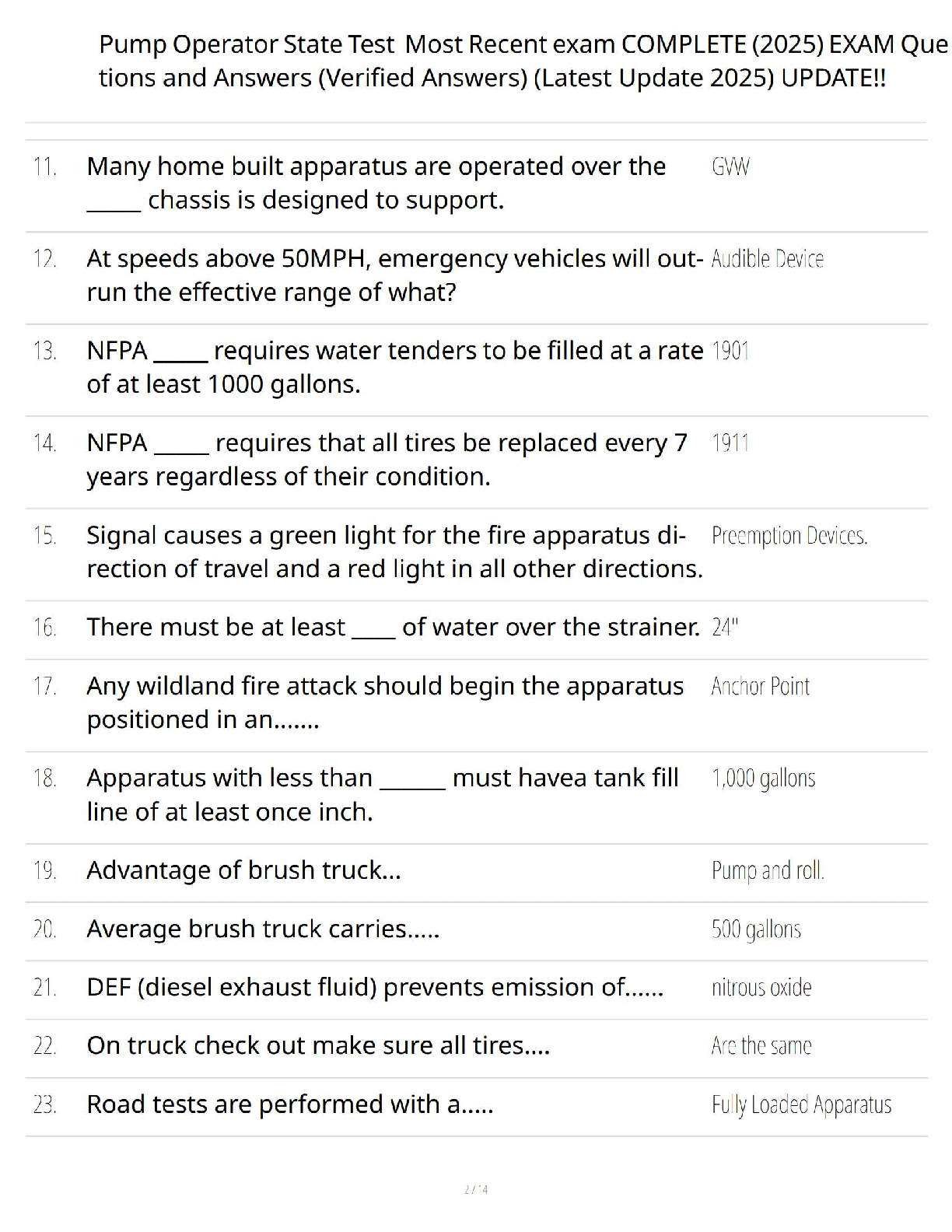 Prepare to excel in your Pump Operator State Test with our newly updated 2025 study guide. This complete test bank features a wide range of exam questions, each paired with a thoroughly verified answer. Designed to cover all critical topics, this resource is your key to mastering the material and passing your certification on the first try. Get the confidence you need to succeed!
