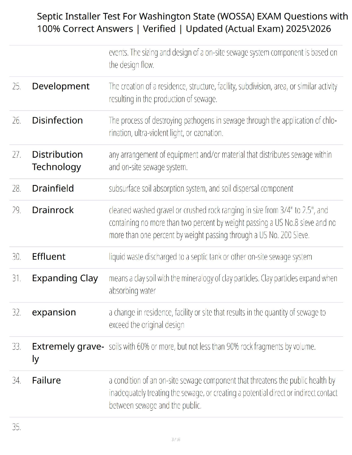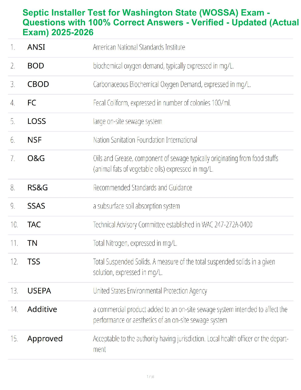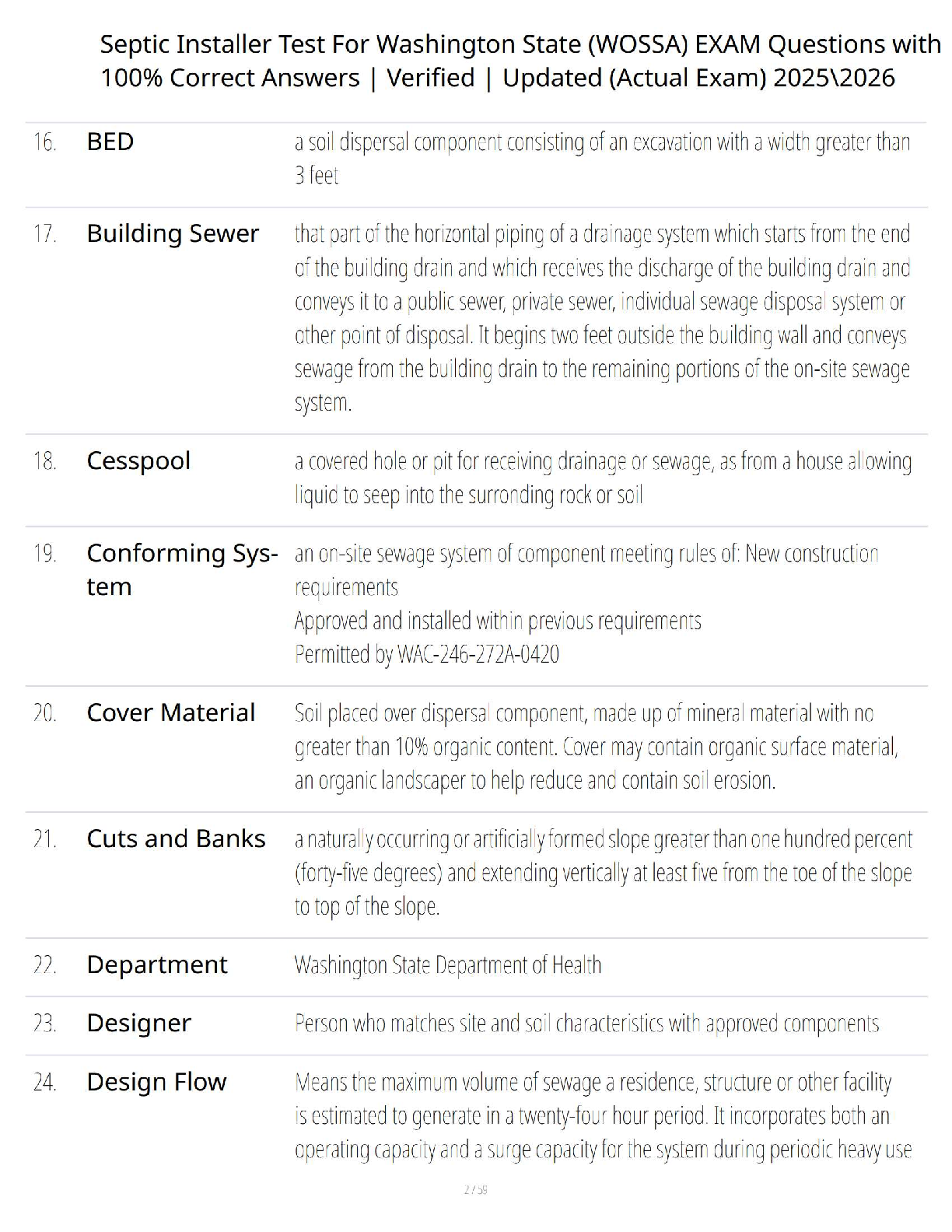 WOSSA Exam 2025-2026: Washington State Septic Installer Test Bank with Verified Questions and Answers to Guarantee a First-Time Pass