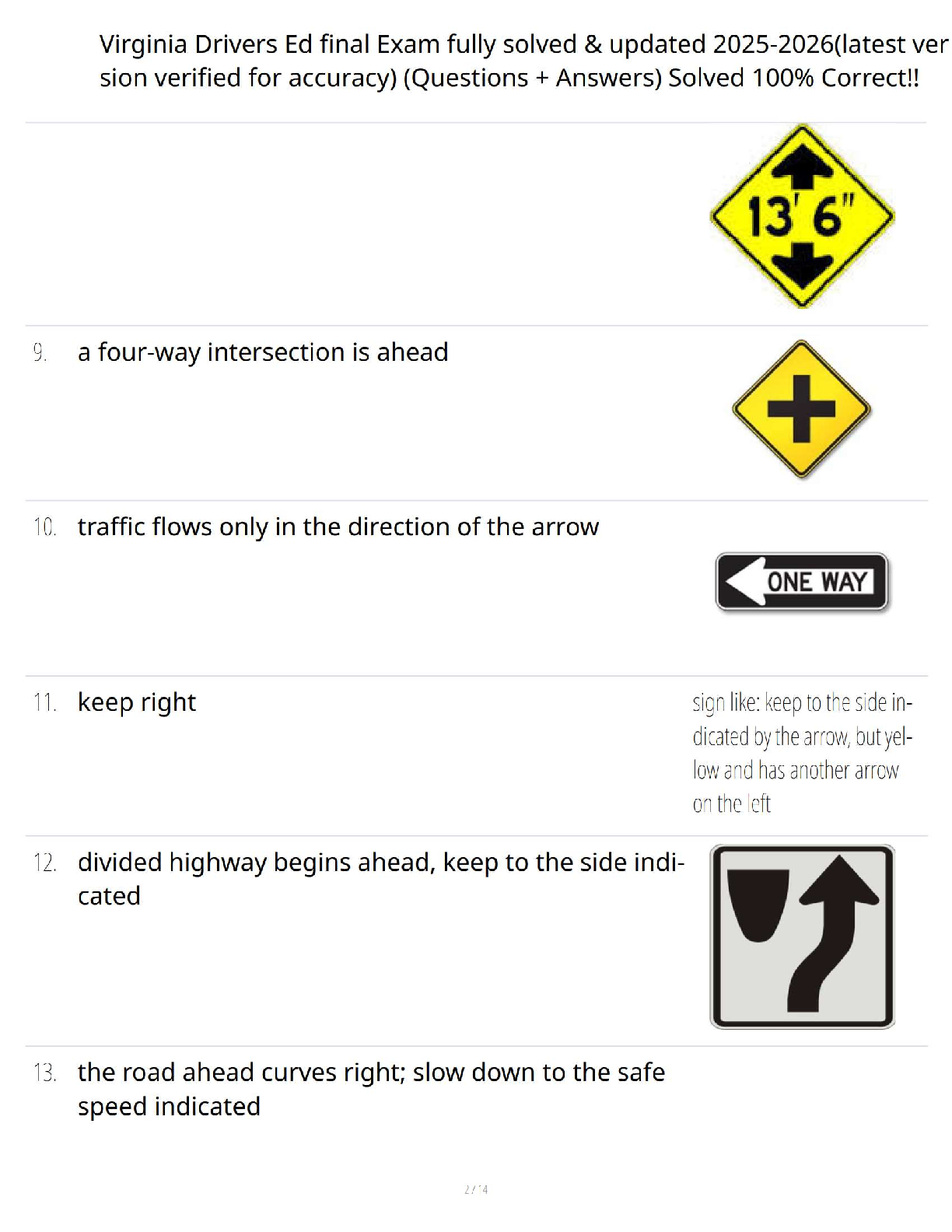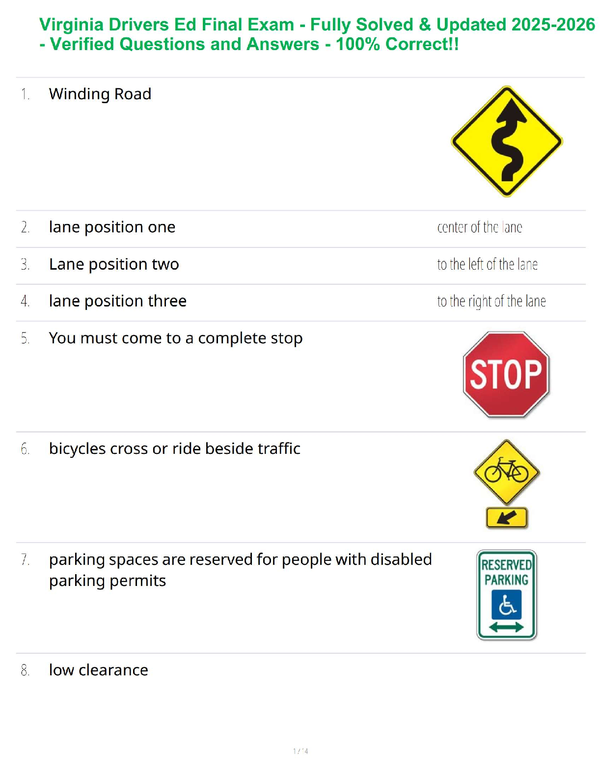 Virginia Drivers Ed Final Exam Test Bank 2025-2026: A Complete Guide with Verified Questions and Answers (100% Correct)