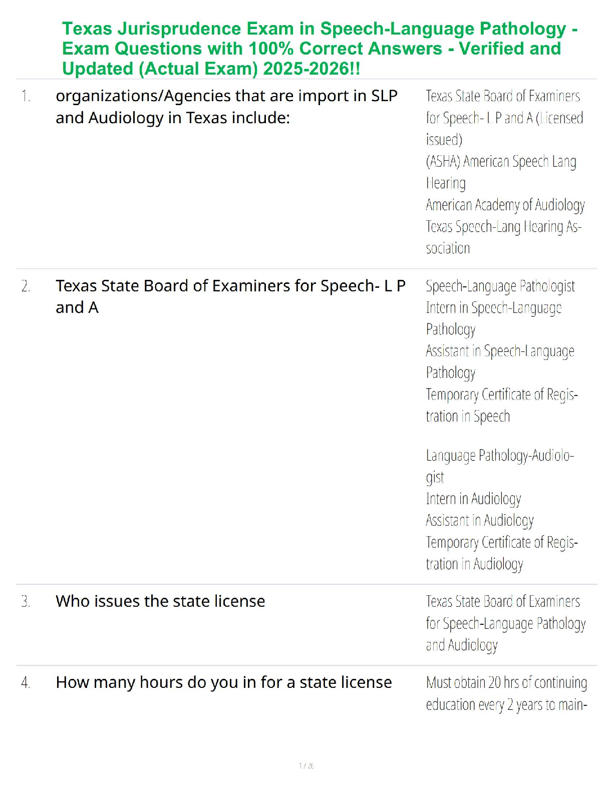Prepare to pass your Texas Jurisprudence Exam for Speech-Language Pathology and Audiology on the very first try with our comprehensive test bank, fully updated for the 2025-2026 academic year. This resource features a complete collection of actual exam questions, each accompanied by a 100% correct and verified answer. Our expertly compiled guide covers all the essential topics you need to know for your state licensure. Stop worrying about resits and gain the confidence to succeed with this ultimate study tool.