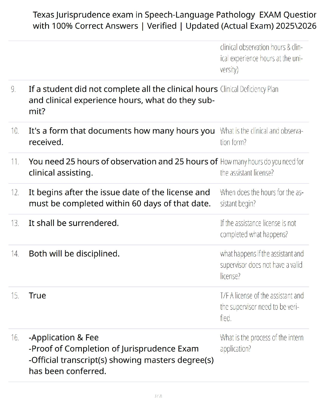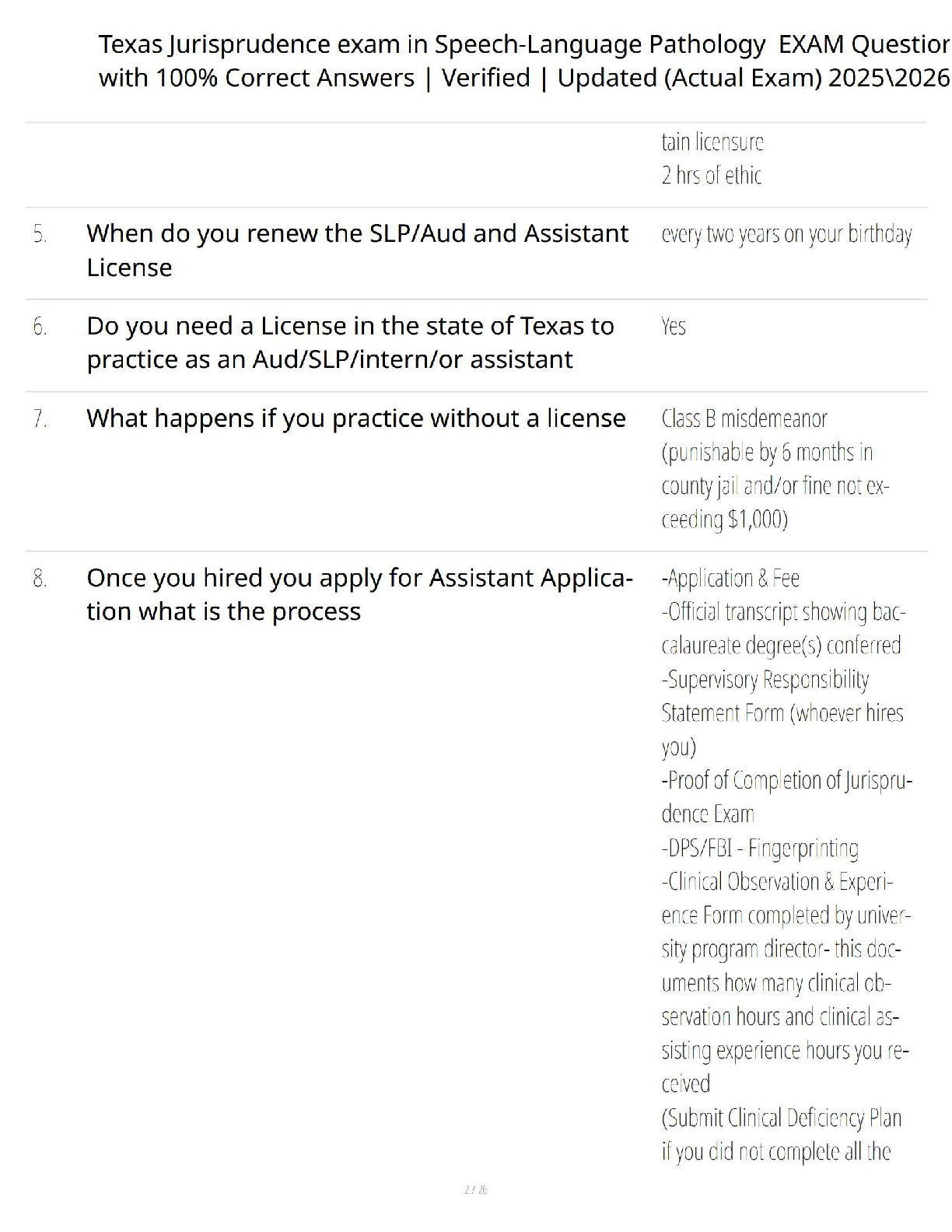 Ace the Texas Jurisprudence SLP Exam 2025-2026: Complete Test Bank with 100% Correct and Verified Answers