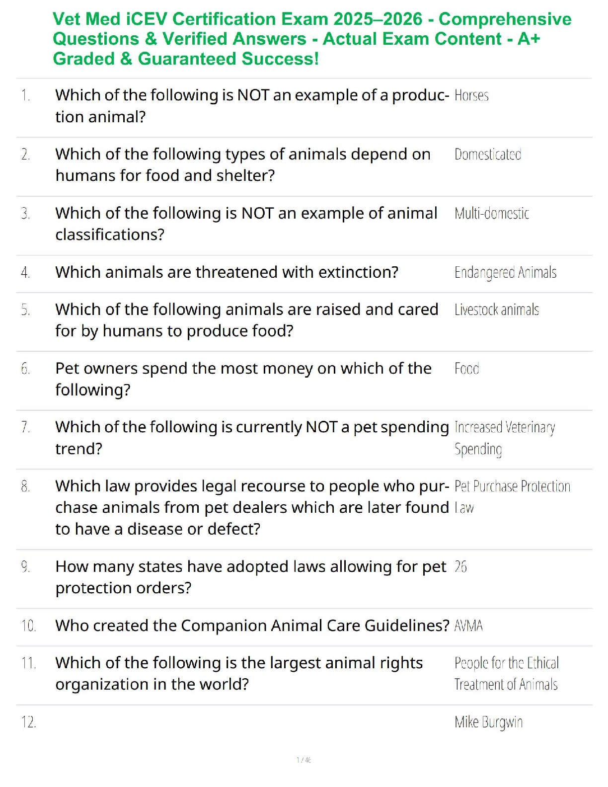 Unlock your potential and guarantee your success with our latest 2025-2026 Test Bank for the iCEV Veterinary Medical Applications Certification Exam. This premium study resource is packed with hundreds of comprehensive questions and expertly verified answers, reflecting the most current exam format and content. Designed to help you master the material efficiently, this guide is your key to passing the exam on your very first try and avoiding costly resits. Get the A+ grade you deserve and take the next step in your veterinary career with confidence!