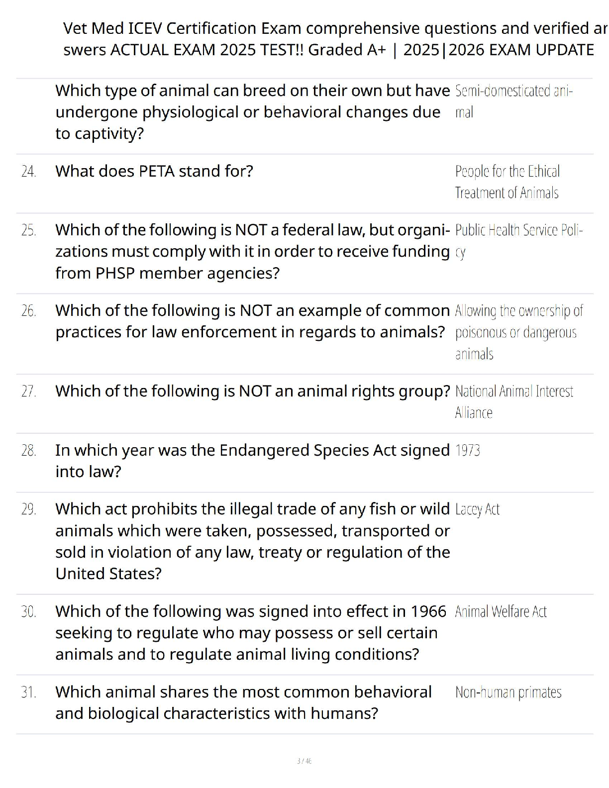 iCEV Veterinary Medical Applications Certification Test Bank 2025-2026 | Verified Questions and Answers for First-Attempt Success