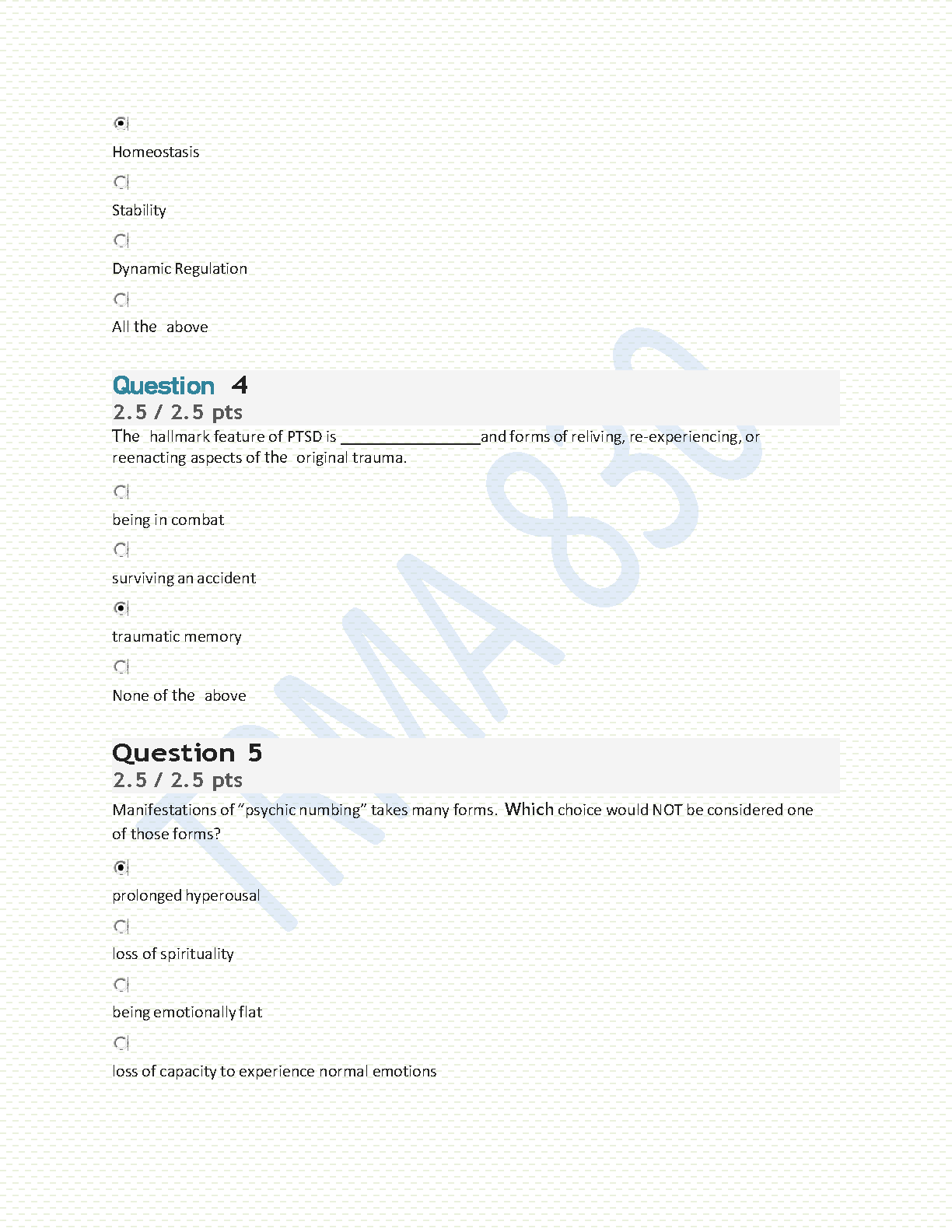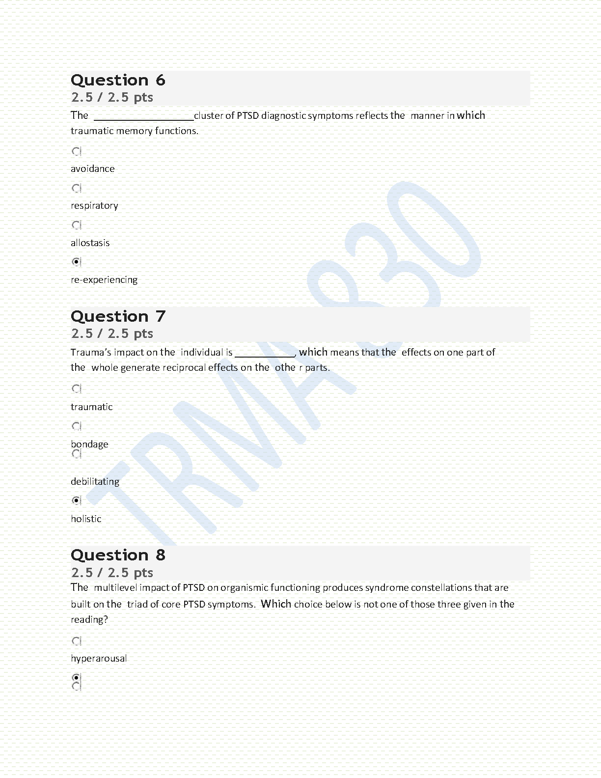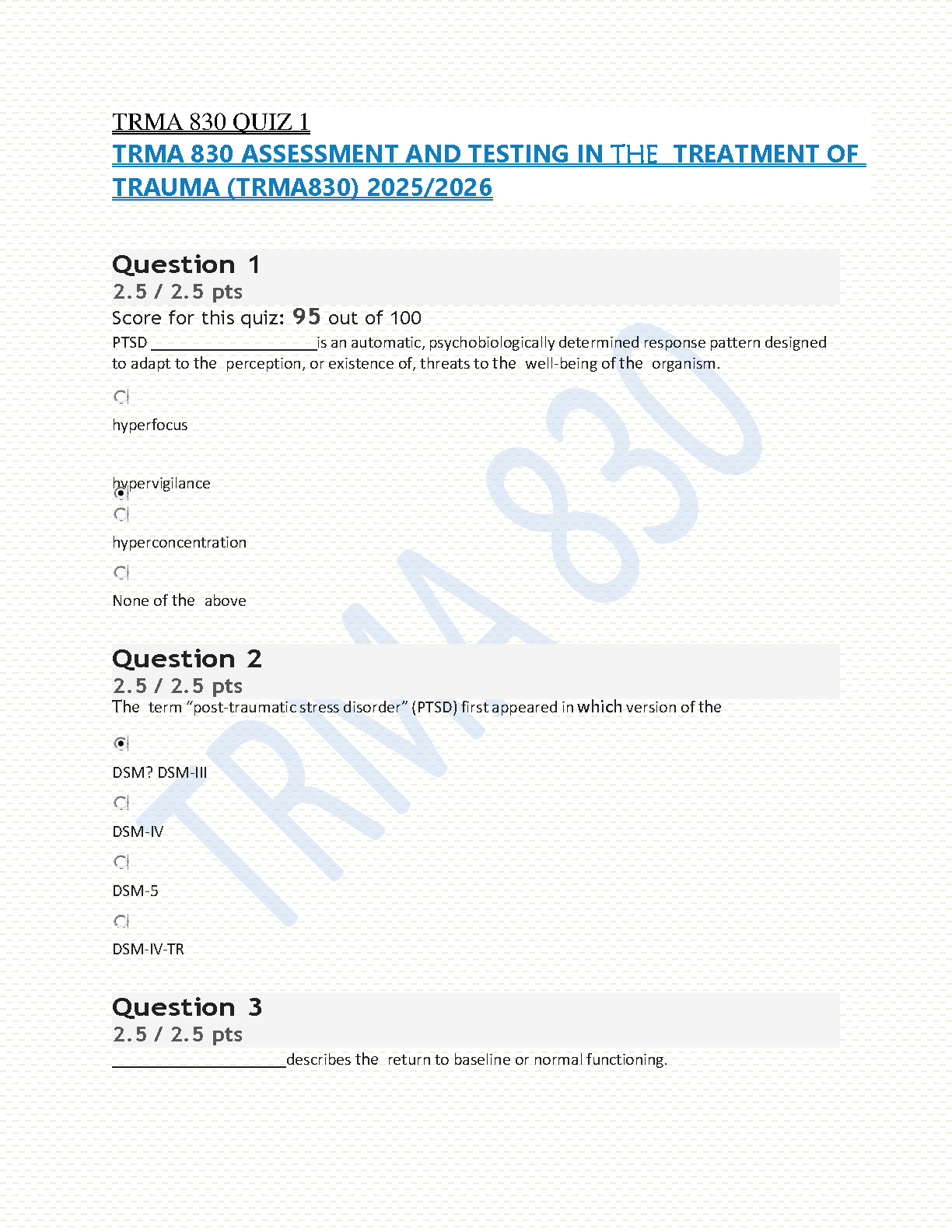 TRMA 830 Quiz 1 Test Bank (Graded 95/100) | Assessment and Testing in the Treatment of Trauma | 2025/2026 Latest Q&A