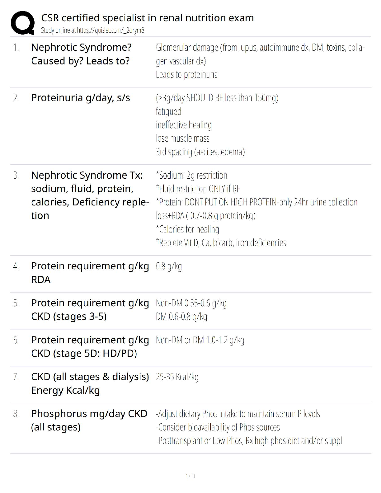 Prepare to ace the Certified Specialist in Renal Nutrition (CSR) exam with our newly updated 2025/2026 study guide. This comprehensive resource is expertly designed to help you pass on your first attempt, eliminating the need for costly and stressful resits. Our guide breaks down complex topics into easy-to-understand notes, covering essential areas such as Nephrotic Syndrome, proteinuria, detailed protein and energy requirements for all stages of Chronic Kidney Disease (CKD), and critical phosphorus management strategies. Get the essential knowledge you need to confidently tackle the exam and earn your CSR certification.