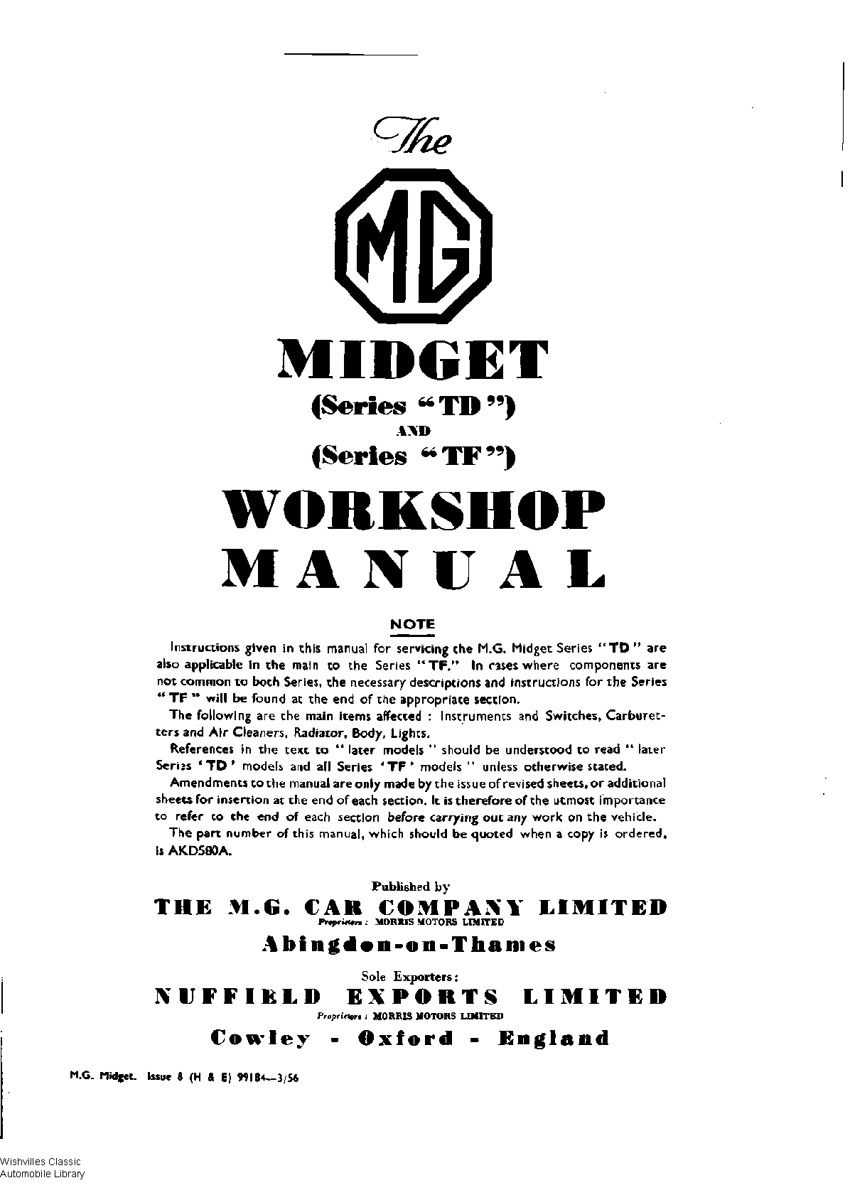 Official BMC MG Midget (Series TD & TF) Workshop Manual: Complete Service & Repair Guide