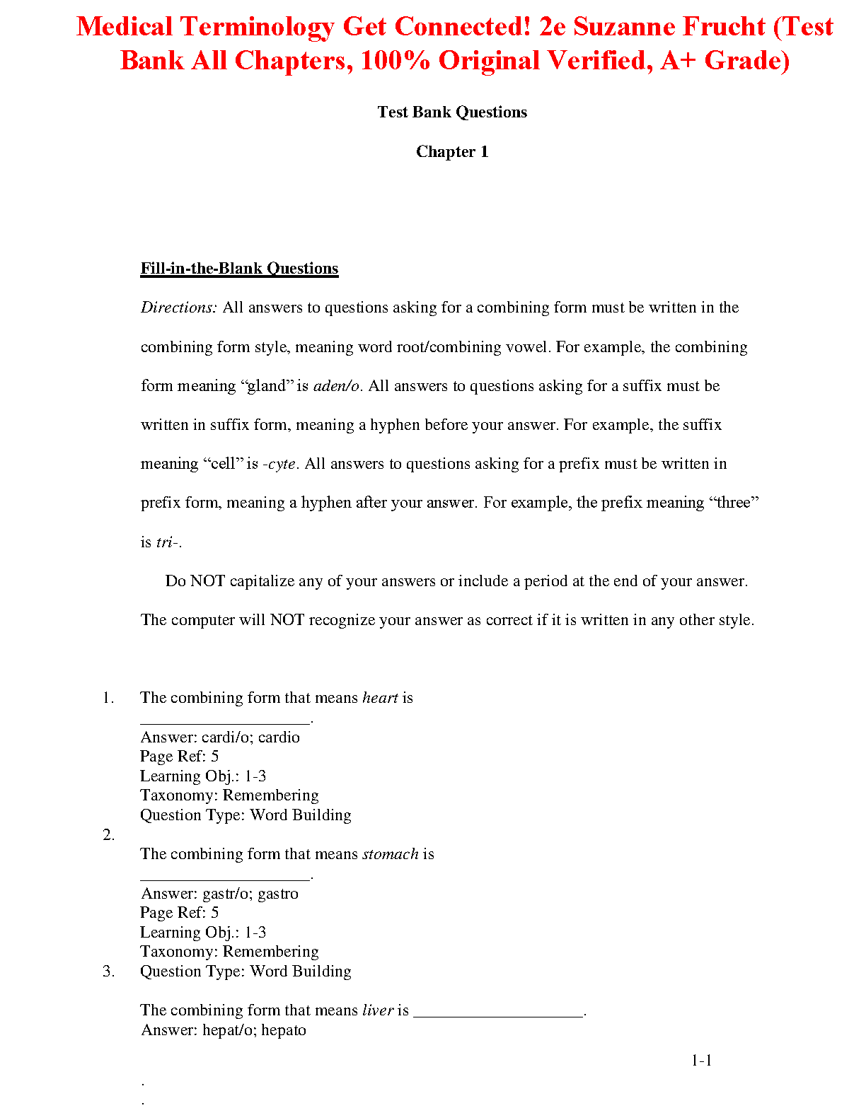 Test Bank for Medical Terminology: Get Connected!, 2nd Edition by Suzanne Frucht (All Chapters)