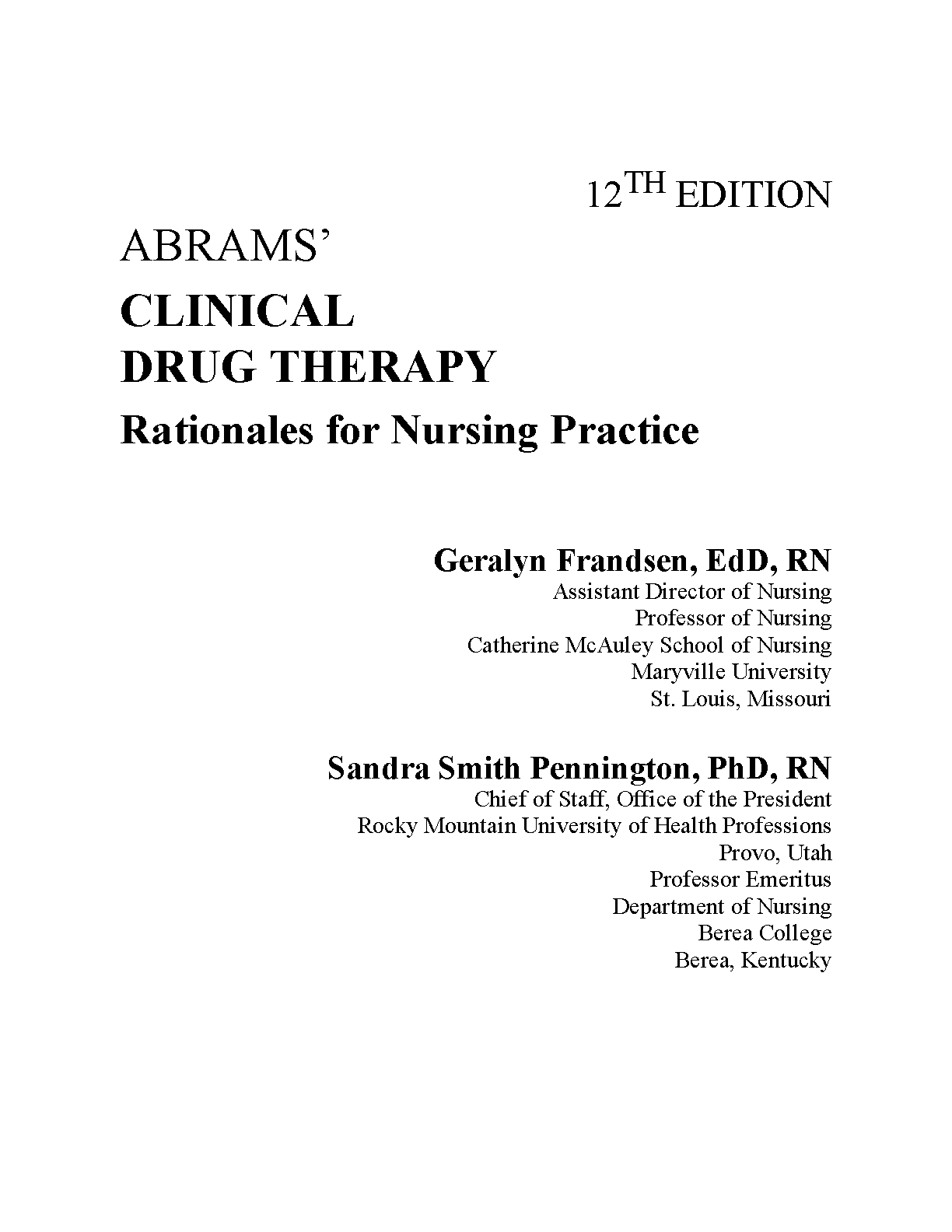 Test Bank for Abrams' Clinical Drug Therapy: Rationales for Nursing Practice, 12th Edition by Geralyn Frandsen & Sandra Smith Pennington
