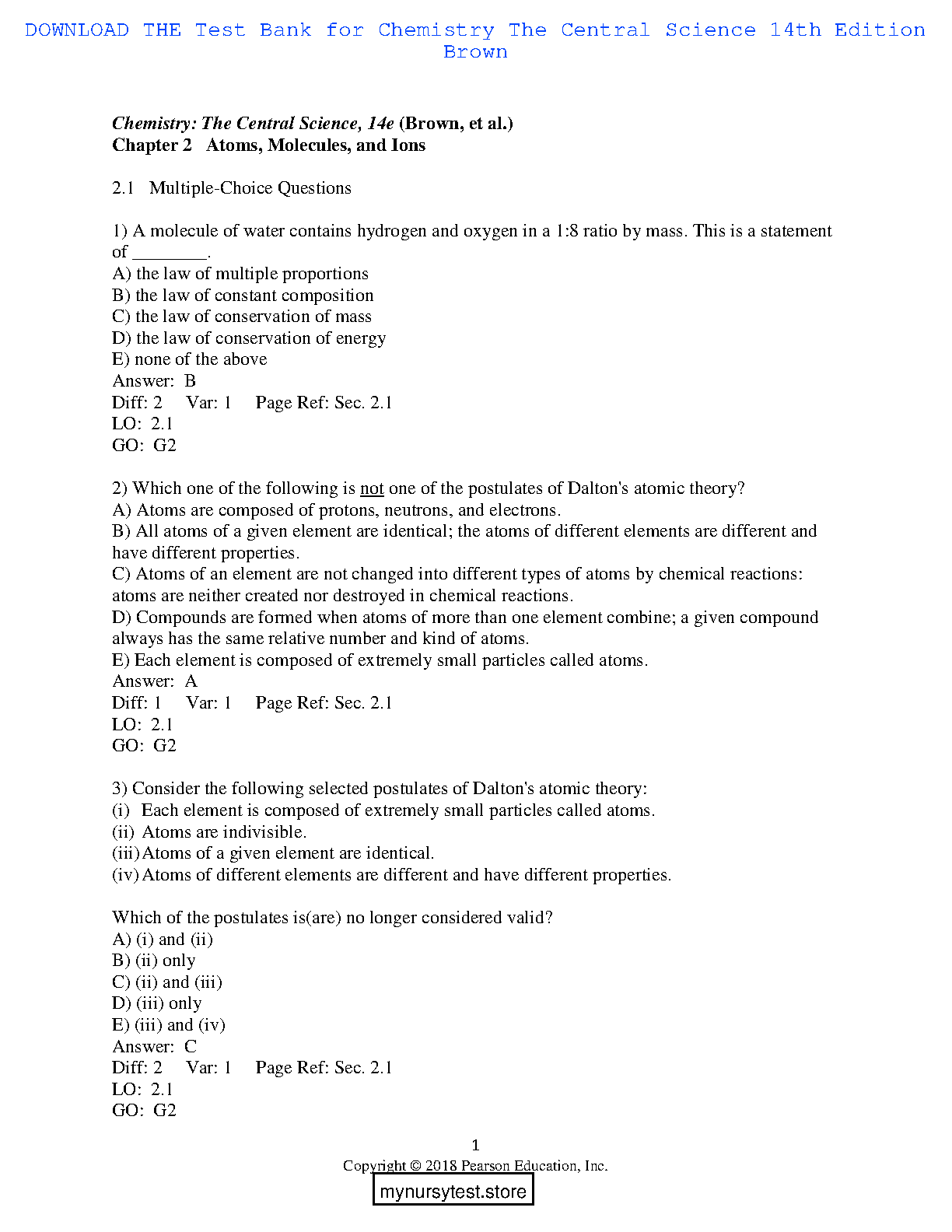 Achieve academic excellence in your chemistry course with the official Test Bank for 'Chemistry: The Central Science, 14th Edition' by Brown et al. This comprehensive resource is your key to mastering the subject, featuring a vast collection of exam-style questions covering every chapter of the textbook. Sourced directly from the publisher, this test bank provides 100% verified answers, ensuring you study with accurate and reliable material. The instant download feature allows you to start preparing for your exams immediately. Get ready to test your knowledge, ace your exams, and secure top grades with this essential study companion.