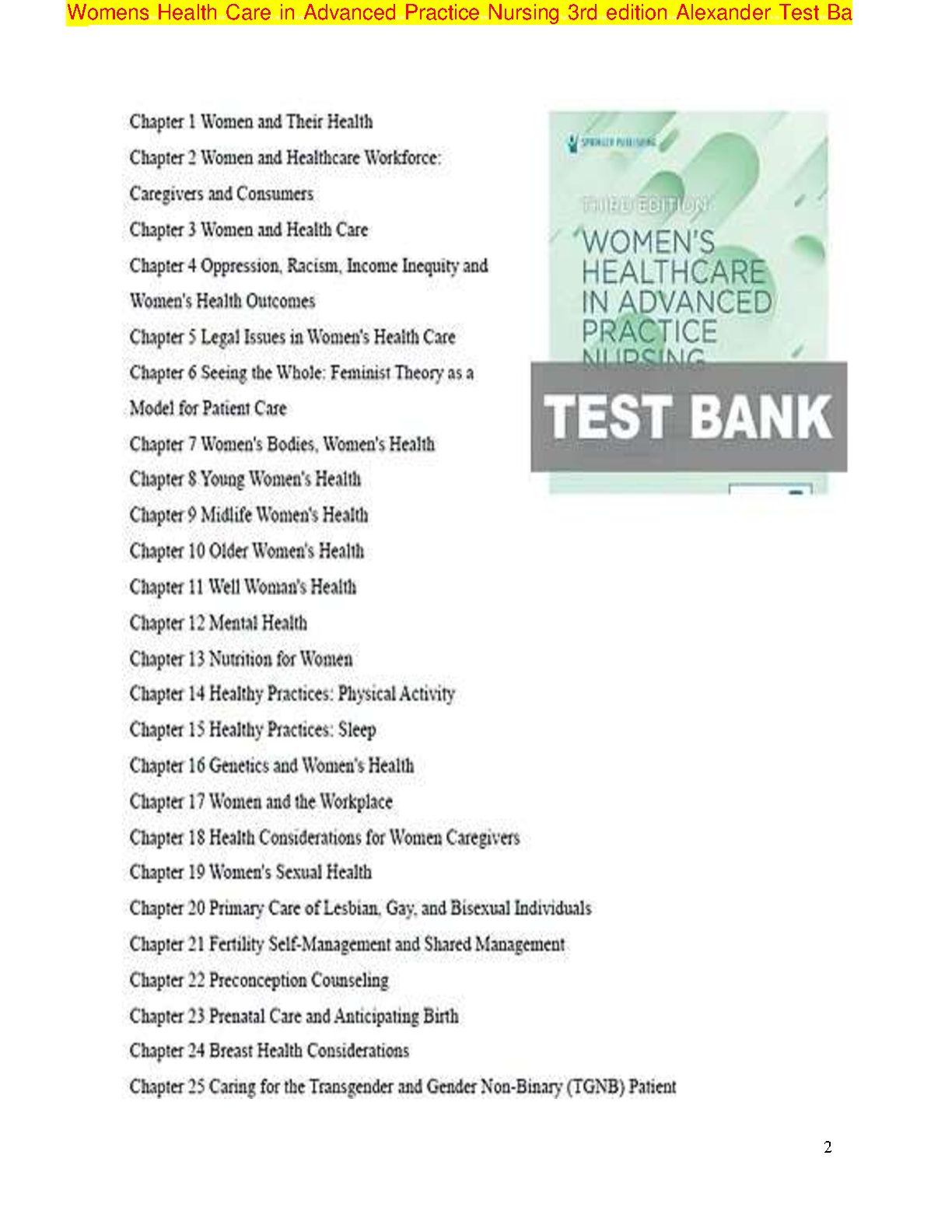 Test Bank for Women's Healthcare in Advanced Practice Nursing, 3rd Edition by Ivy M. Alexander, Joyce D. Carriello, & Heather S. Hubbard